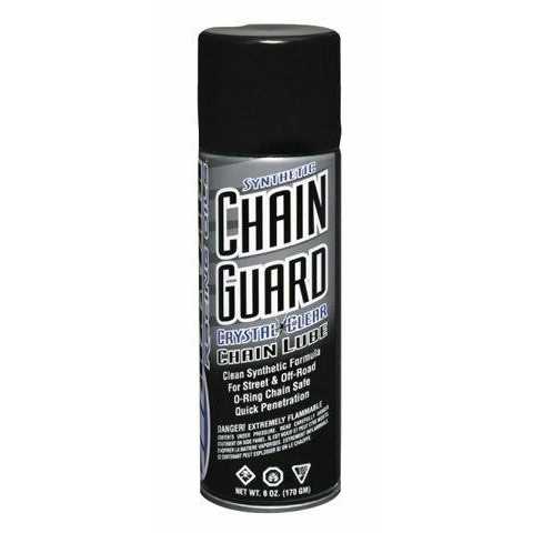 Maxima Crystal Clear Chain Guard An advanced chain lubricant specifically formulated for todays on and off road, high performance motorcycle chains Safe for all o-ring chains and makes an excellent lubricant for all motorcycle control cables Compounded with the finest synthetic lubricating bases and reinforced with the most advanced anti-wear and extreme pressure additives available It also contains special additives to prevent fling-off? Extends chain and sprocket life Easy application Race proven protection Waterproof and heat resistant Excellent rust and corrosion protection Contains no CFC’s 13.5 oz. aerosol can
