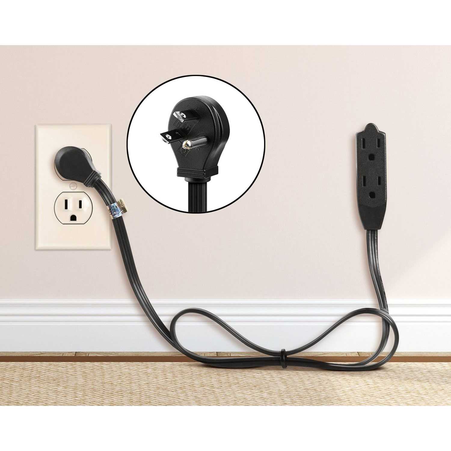 Maximm3 Prong Angled Flat Plug Extension Cord/Wire The flat extension cords are unique for their sleek and adaptable design. The 3 prong plug is designed to a 36 degree angle ensuring that it won’t interfere with the other outlets, keeping it free for use with additional appliances or devices. Clutter Control Maximm Solves those power problems with ease using the Flat Plug Angled Extension Cord. It has a space-saving design to eliminate bulky or awkward cords. Since it hugs