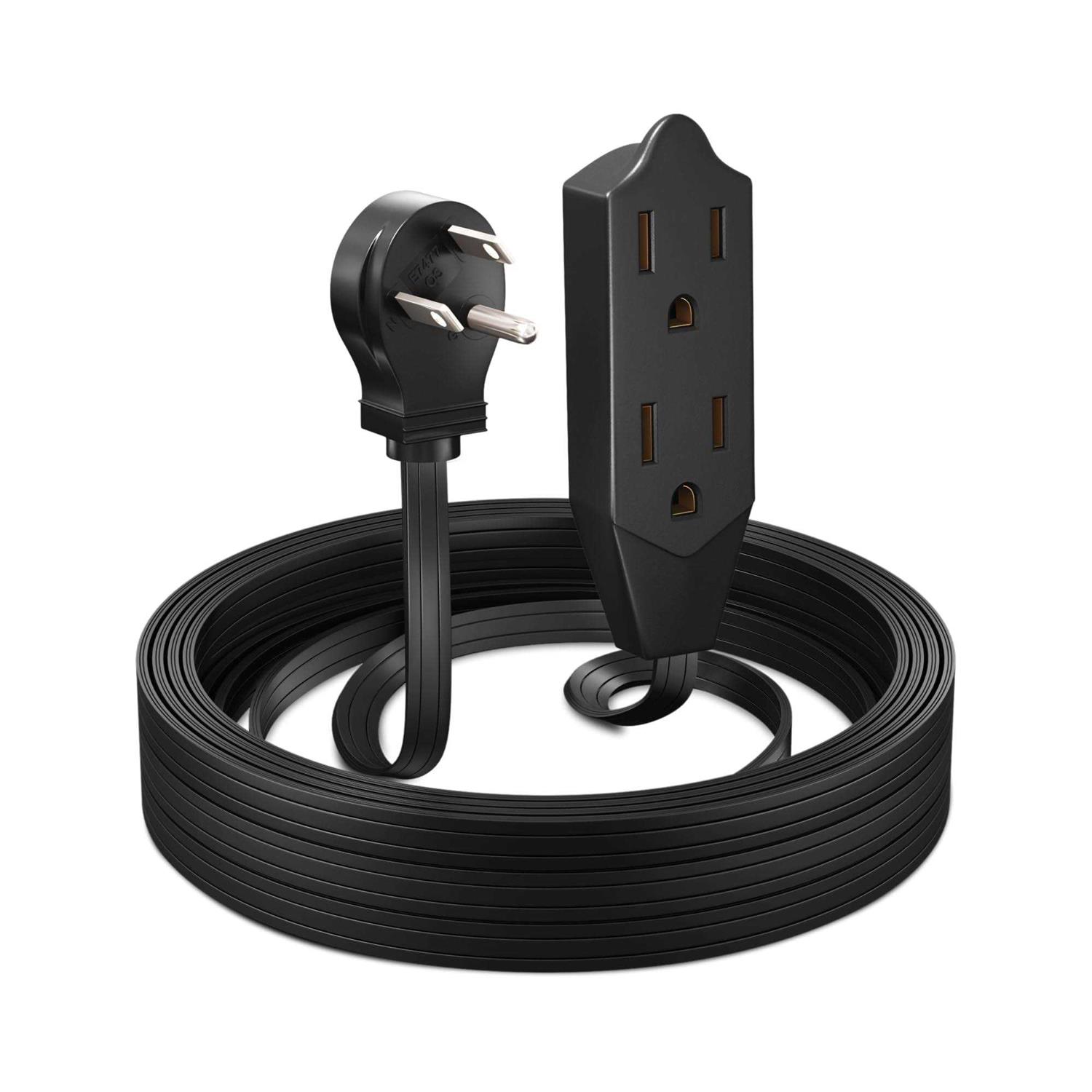 Maximm Cable 15 Feet Flat Plug Extension Cord/Wire, Multi Outlet – 3 Prong Angled Plug Extension Cord – Black