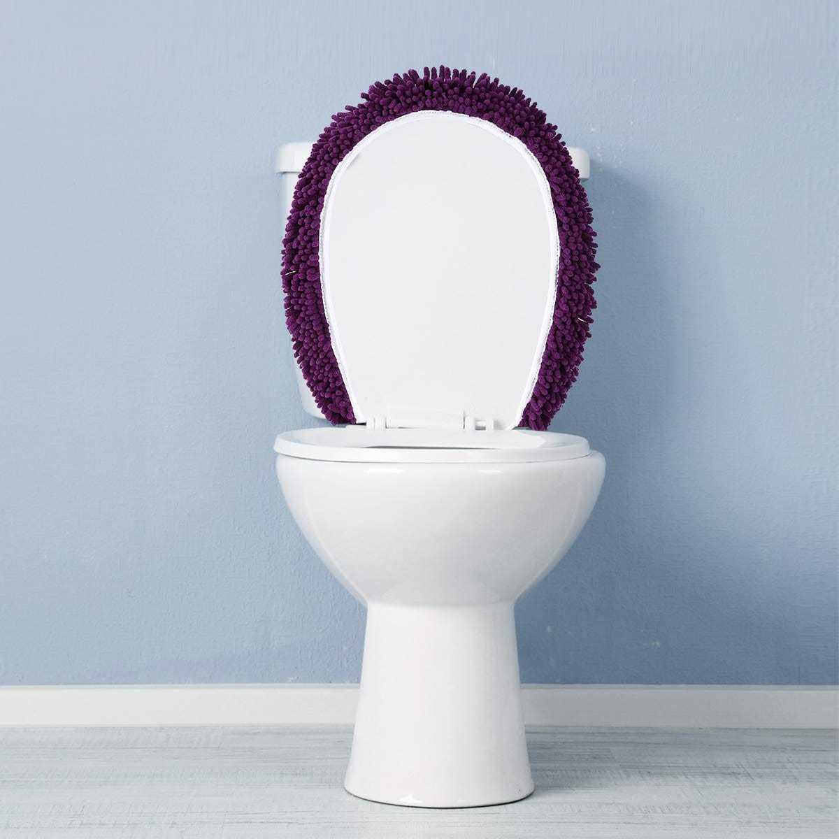 MAYSHINE Plush Shaggy Standard Toilet Seat Lid Cover (Plum) | Fuzzy Chenille Microfiber, Fluffy Soft Absorbent – Machine Washabl