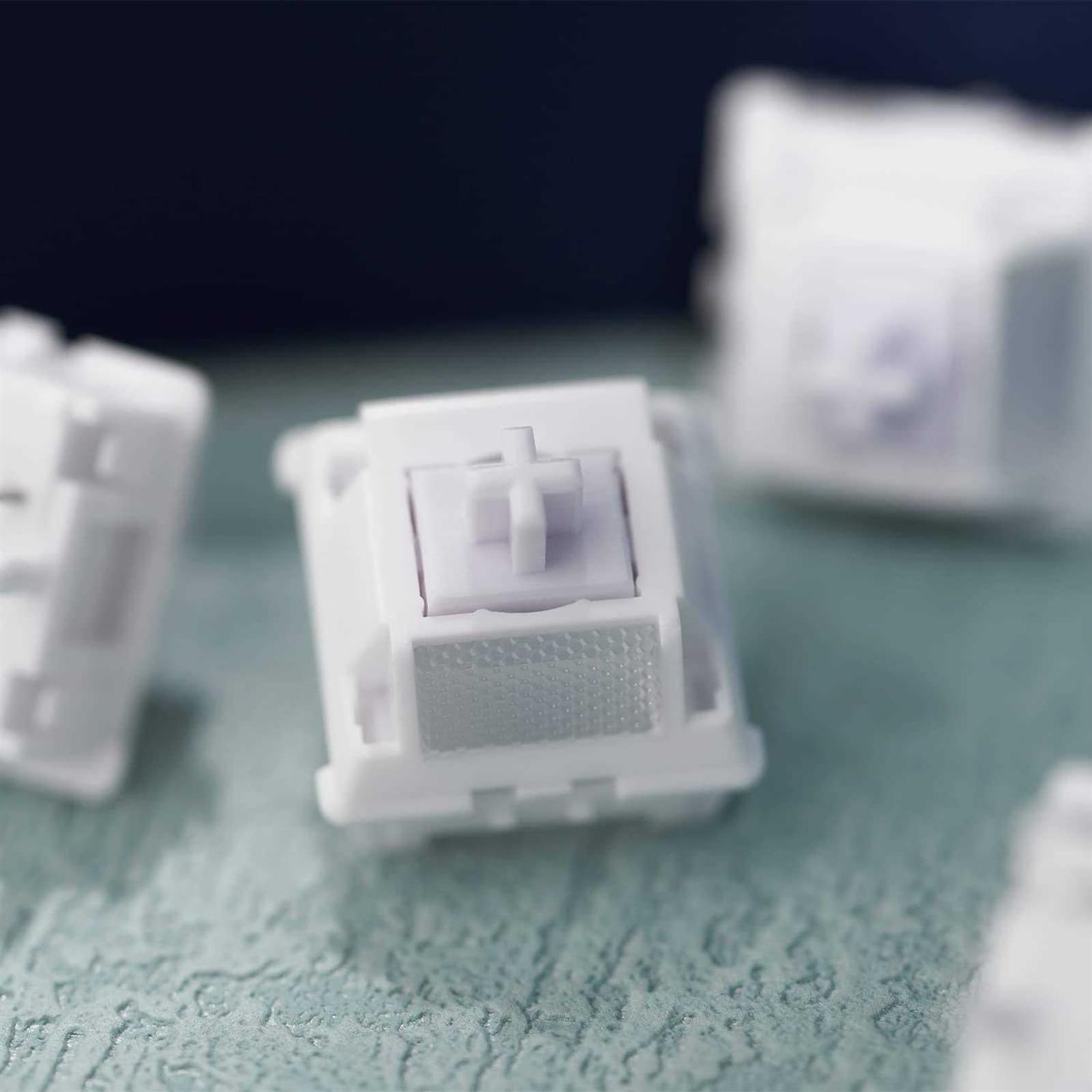 WS Switches are designed with POM Linear Stem. Top housing: Polycarbonate Bottom housing: Nylon. Total travel distance: 3.8mm Actuation travel: 1.90± 0.5mm Actuation force: 53±5g Bottom-out force: 63.5g. 5-pin PCB Mount. Lubed Switches. Specs: Top housing: Polycarbonate Bottom housing: Nylon Stem: POM Total travel distance: 3.8mm Actuation travel: 1.90 ± 0.5mm Actuation force: 53 ± 5g Bottom-out force: 63.5g WS Morandi Switch Comes with a Light Diffuser that is made of PMMA Material, Features High Transparency and Good Stability. 5-pin PCB Mount. Prelubed Switches.