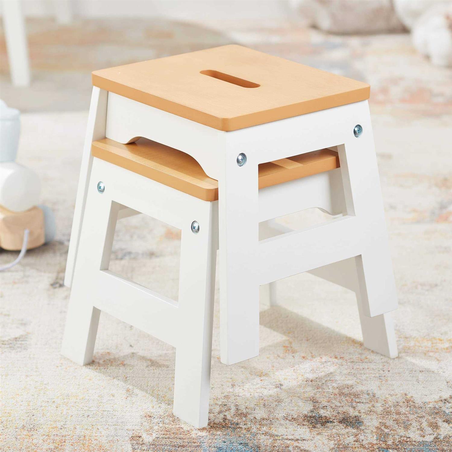 Melissa & Doug Wooden Stools – Set of 2 (White/Natural)