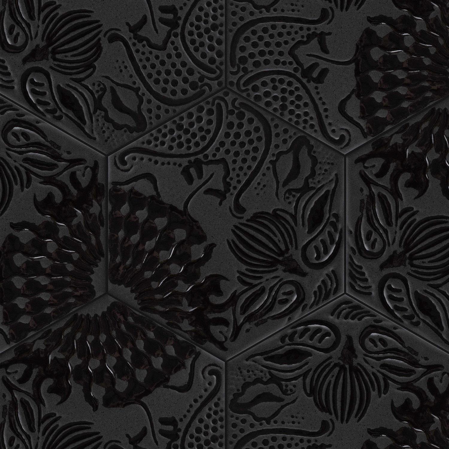 Merola Tile Gaudi Lux Hex Black 8.63 x 9.86 Porcelain Floor and Wall Tile