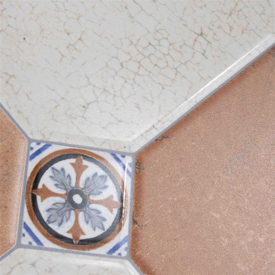 Ceramic Floor and Wall Tile mimics the appearance of old-world rustic elegance. Complete with a crackle glaze, this tile offers a worn look accented with geometric designs that gives your space a truly authentic feel. With tones of blue, orange and yellow on an alternating muted white and orange background, it it a perfect addiction to any indoor installation. Tile is the better choice for your space. This tile is made from natural ingredients, making it a healthy choice as it is free from allergens, VOCs, formaldehyde and PVC.