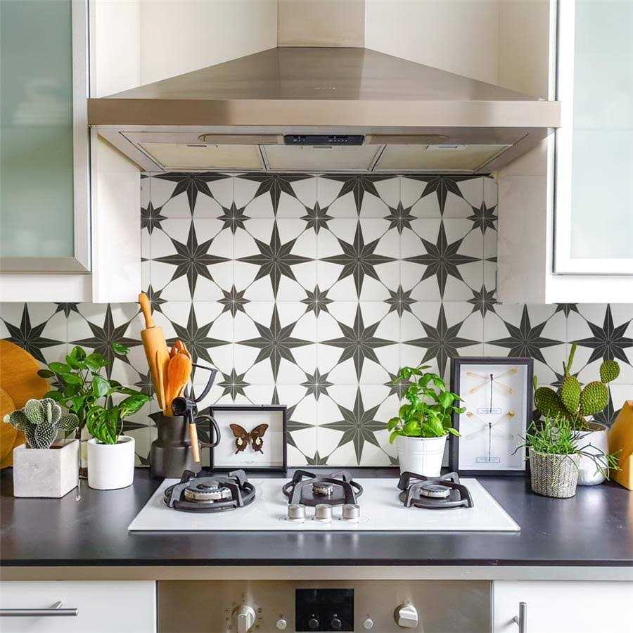 Merola Tile Stella Nero Encaustic 9-3/4″ x 9-3/4″ Porcelain Floor and Wall Tile