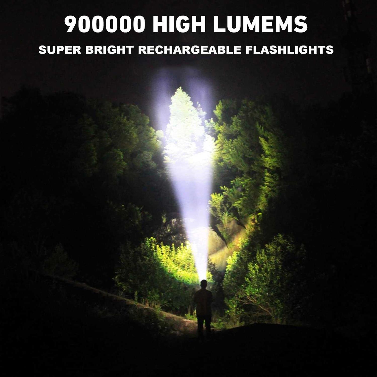 MILAOSHU Rechargeable Flashlights 900,000 High Lumens 2 Pack 12 Hours Powerful LED Flash Light with 3 Modes