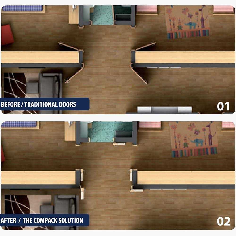 Compack 180 System is a door technology that opens up new interior design frontiers, making more space available even in cramped quarters. Compack 180 System is a functional alternative to all types of doors. No modifications to walls are necessary. There is no sliding or rolling members, the door moves fluidly without a sound. Prolonged use does not compromise the quality of the movement. Advantages MAXIMUM FREEDOM Compack 180 allows for more freedom of design, removing the space constraints inherent to traditional swinging doors. The Compack 180 hardware system is designed for use with interior doors and with any dcor. Based on reliable, guaranteed and patented technology, Compack 180 is a valid alternative to all traditional door systems. DURABILITY AND RELIABILITY With Compack 180 hardware, the movement of the door leaf is stable, silent and ergonomic. Ledges on three sides ensure excellent acoustic insulation when the door is closed. ADAPTABLE TO ANY SITUATION The Compack 180 System can be installed without any need for modifications to the walls. No masonry or carpentry work means no added costs with respect to traditional door systems. The reduction in clearance requirements eliminates the problem of interference between doors. PATENTED- MADE IN ITALY Compack 180 is easy to install and fully inspectable. There are no sliding elements such as door hangers or sliding pegs, the door moves smoothly without making the slightest sound. Prolonged use has no effect on the quality of operation. Technical Data Weight Capacity per Door 110 lb / 50 kg Door Thickness From 1-1/2 inch to 1-3/4 inch Type of Door Wood System Mounting Door and Frame Door Opening Left or Right handed doors Product Type Door Hardware Function Folding Set Include All necessary hardware (less doors) Installation Instruction