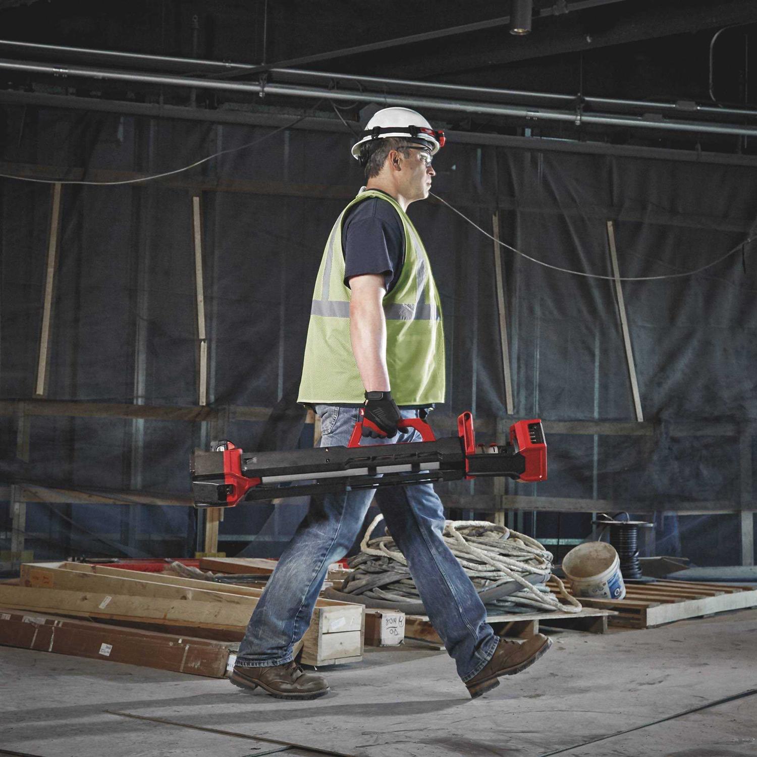 The M18 Rocket Dual Power Tower Light is providing more light on the job with 2500 lumens of Trueview Hight Definition Output. All while having the capability being Dual Power powered by M18 or extension cord. The light head can be extended from 4-7 ft to light overhead work or minimize shadows when casting light downward. Capable of filling large areas with light it provides 2 00 lumens in its high mode 1 00 in medium and 700 in low and it can run for up to 4 8 or 12 hours with an M18 Redlithium XC 5.0 Battery Pack. It uses Trueview High Definition Output providing neutral white color and a high color rendering index paired with a Milwaukee designed reflector to produce an even beam pattern. Its reinforced legs are impact resistant and its low center of gravity provides a stable base. The light head is protected by an impact-resistant lens and bezel and it nests into a protective shroud for secure transport and storage. The combination of these technologies offers professionals the highest quality LED lighting solution on or off the jobsite.
