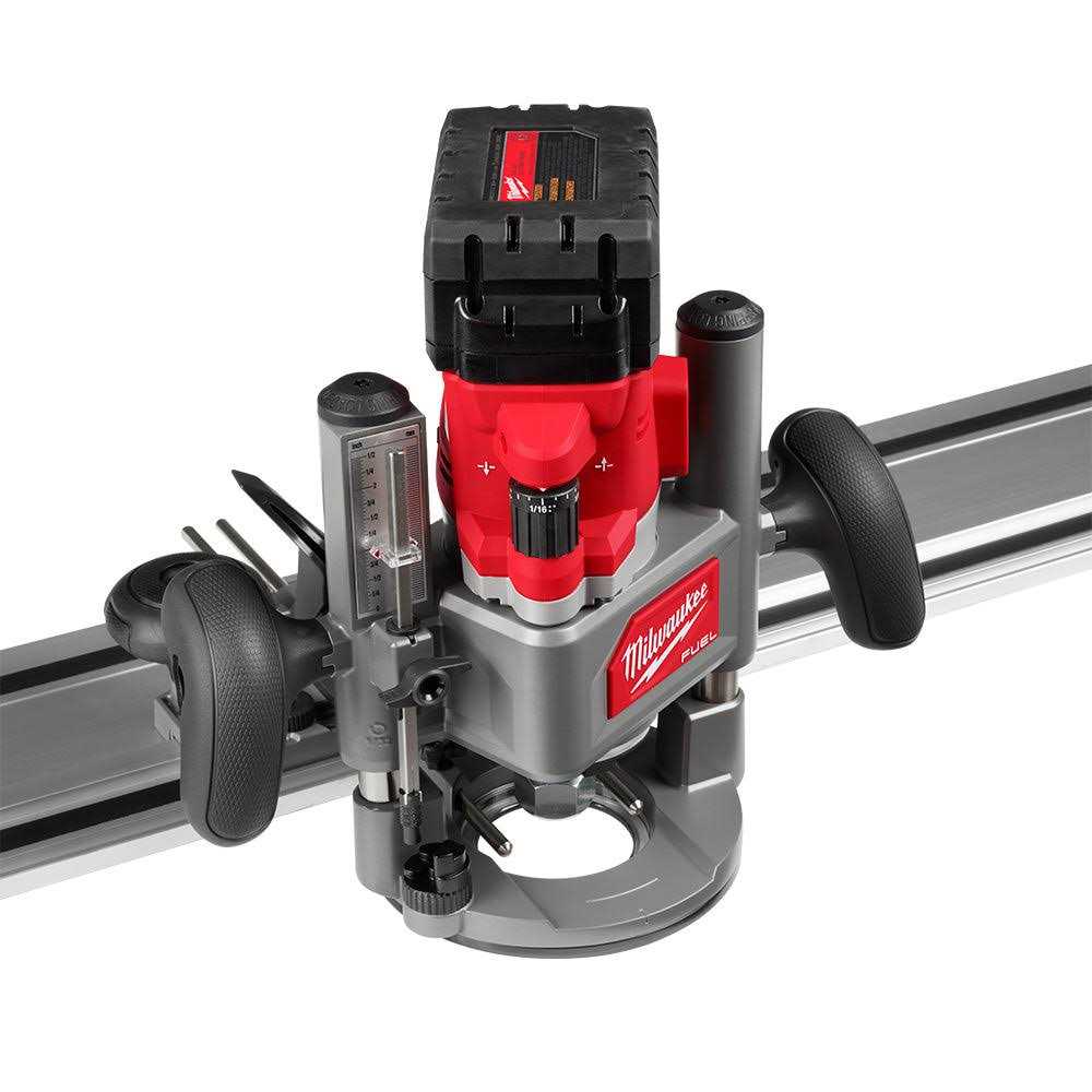 The MILWAUKEE Router Guide Rail Adapter delivers portable precision and enhanced versatility for the Milwaukee M18 FUEL Compact Trim Router (2723-20) and the M18 FUEL 1/2” Router (2838-20). The durable aluminum construction, cam lock system, and anti-tilt feet deliver smooth, consistent passes across the guide rails. The adapter also features an adjustable depth of 2”, a depth scale with markings in inches and millimeters, and included gauge block that increases accuracy and reduces set-up time.