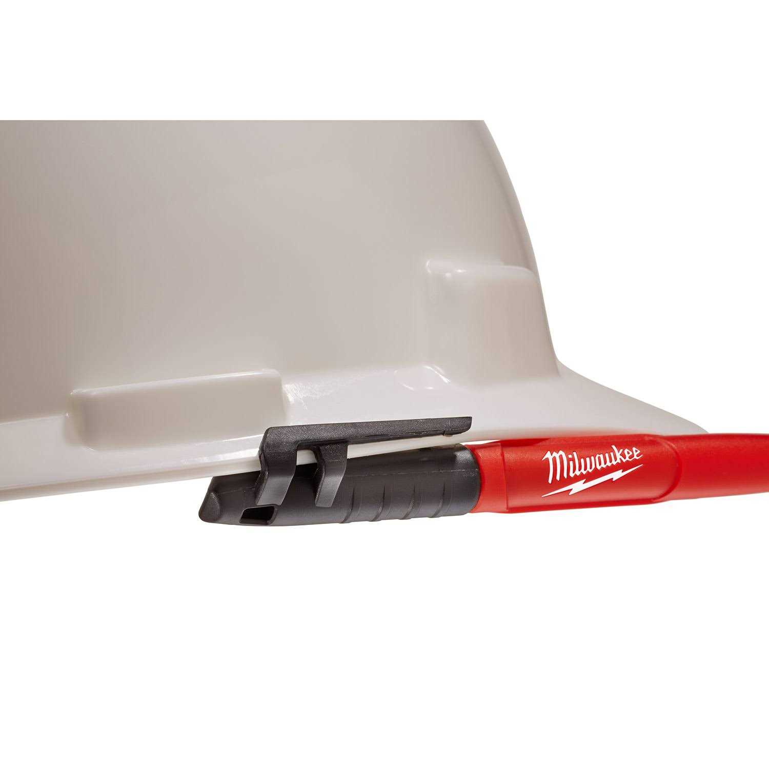 The markers are optimized for jobsite conditions. The durable tip is designed to withstand writing on rough surfaces such as OSB, cinderblock and concrete and writes through dusty, wet or oily contamination. The hard hat clip is designed to clip onto the brim of hard hats for easy access. The hard hat clip is designed to clip onto the brim of hard hats for easy access.
