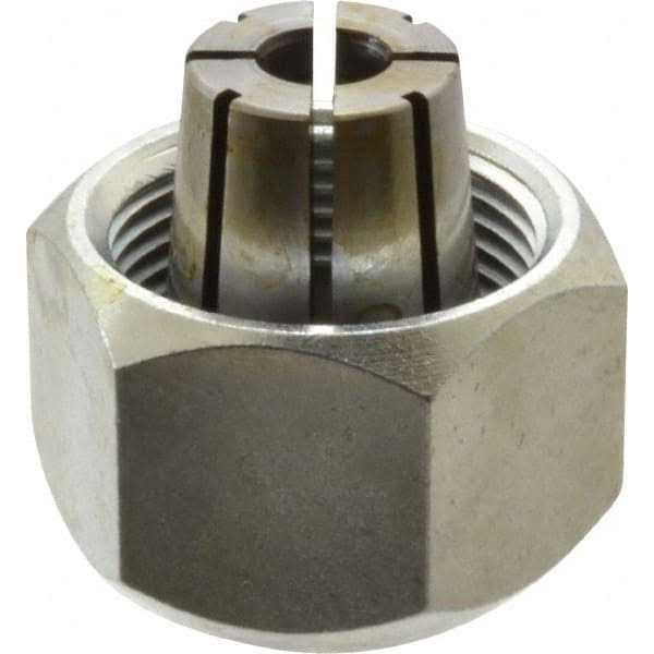 Complete 1/4 in. collet and locking nut assembly for use with Milwaukee routers (series 5615, 5616, 5619, and 5625). For use with 1/4 in. shank router bits, the assembly includes a premium 1/4 in. collet with self-release feature that prevents bits from jamming in the assembly. The collets extra-long, 8-segment design ensures maximum bit to collet surface contact to minimize vibration and runout. The precision ground locking nut features extra wide faces to ensure a firm, reliable nut-to-wrench connection. Includes 1/4 in. collet and locking nut.