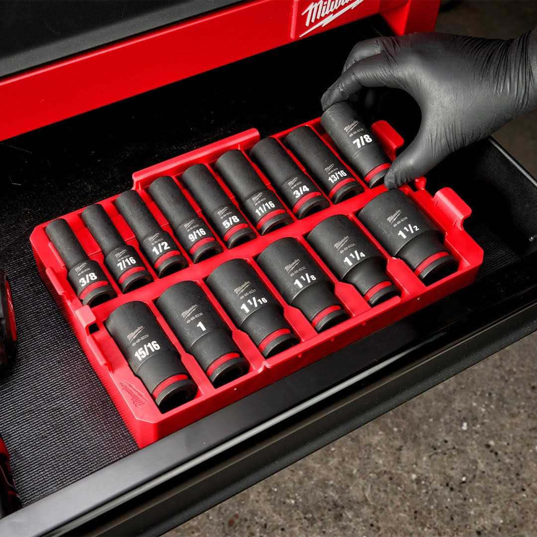 Milwaukee 49-66-6817 Shockwave Impact Duty Socket 1/2 in. Dr 15pc SAE Tray Set
