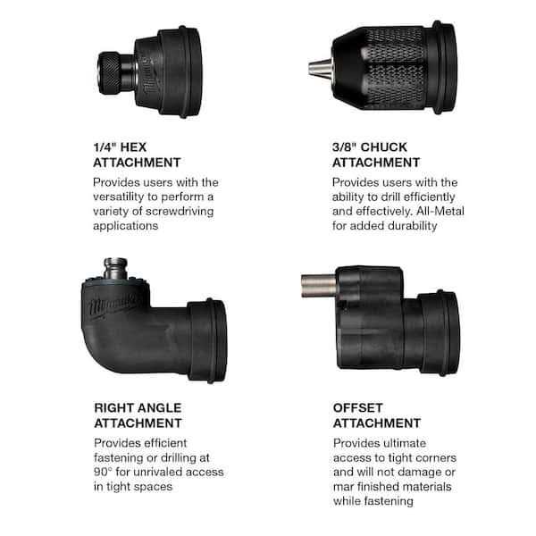 The Milwaukee M12 FUEL Installation Drill/Driver Kit features 4 dedicated solutions, delivering unrivaled access and control with up to 300 in./lbs. of maximum torque. 4 dedicated heads, including a 3/8 in. Chuck, Offset Driver, 1/4 in. Hex and Right Angle, can attach in 16 different positions. This provides users with a 4-in-1 drilling and driving solution that is purposefully designed to reach challenging locations. The compact drill driver features a slim tool profile and an inline grip in the back of the tool that provides ultimate tool control and unrivaled access. The front of the tool is equipped with a magnetic bit holder that securely holds multiple bits, enhancing user productivity. These unique features combine with the tools compact size and weight enabling users to maneuver the multi-head drill/driver for maximum versatility and best access in hard to reach places. The modular drill/driver is equipped with a POWERSTATE Brushless Motor, delivering users with 1600 RPM and 300 in./lbs. of torque. This provides them with the necessary power for installation applications, especially in electrical, cabinet installation, MRO, HVAC, automotive and remodel applications. Our M12 REDLITHIUM HIGH OUTPUT XC5.0 delivers 25% more power and runs 25% cooler vs our other M12 REDLITHIUM XC battery packs.