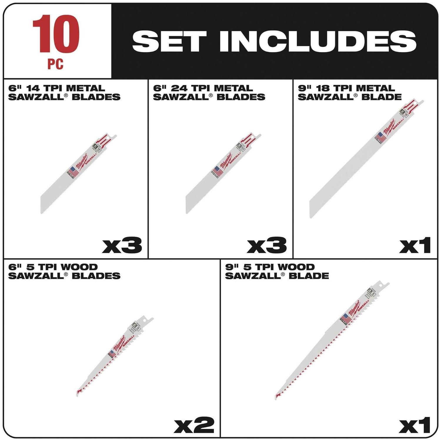 Milwaukee 49-22-1110 10 Piece Sawzall Blade Set