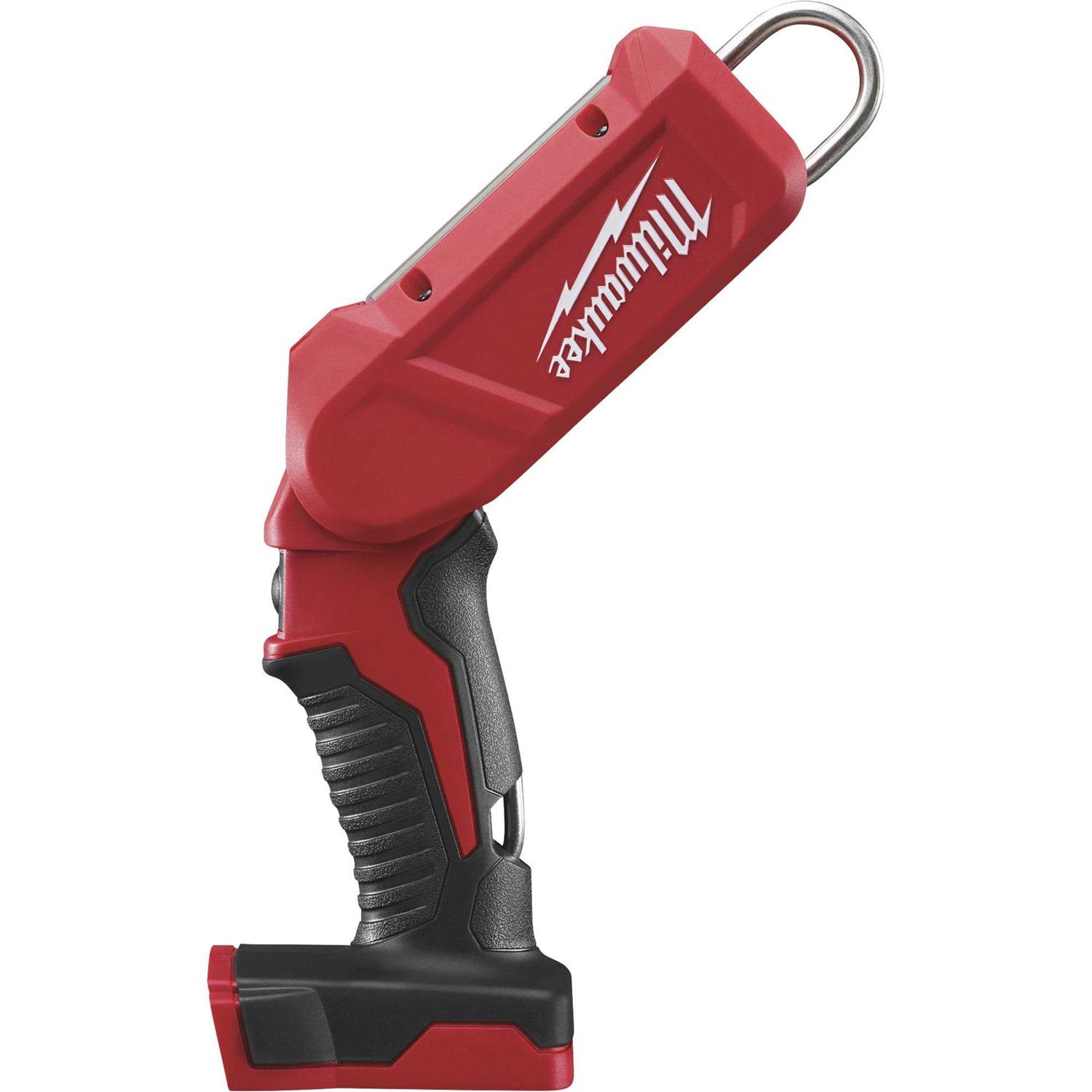 The M18 LED stick light features two light settings with three powerful LEDs. The high setting provides 300 lm and 140 lux for maximum coverage and light output, while the low setting provides 150 lm and 70 lux for interior work where a brighter light may not be necessary. Designed for the jobsite and increased productivity, the stick light features a replaceable, impact resistant lens that is engineered to stand up to the toughest work conditions, and two multi-position stainless steel hooks for hands free use. For added utility, a 45o pivoting head allows for 180o of versatile coverage. Powerful three LED design provides 260 Lumens and 140 Lux.Removable Lens Plate. Provides user the ability to replace lens plates when damaged instead of replacing entire unit2 Adjustable Metal Hooks. Allows for light to be hung in multiple orientations when being used.Compact Design. Operates in locations other lights cannot.