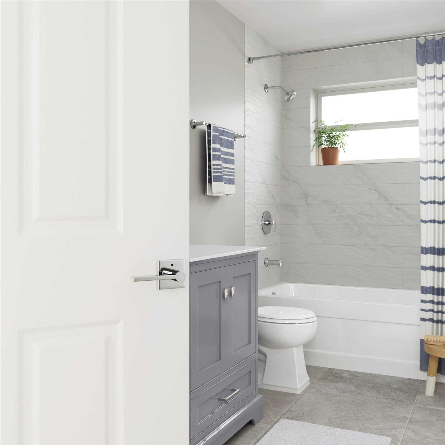 Privacy: Privacy door hardware features a locking mechanism on the interior for use on bedroom and bathroom doors where locking is needed. The exterior side features a small pin hole to unlock the door hardware from the outside.