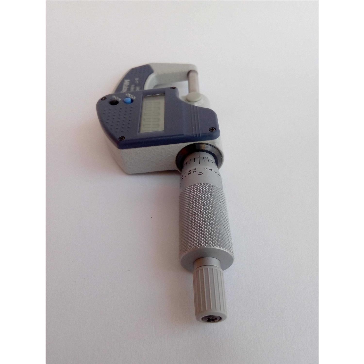 The Mitutoyo 293-831 Digimatic MDC-MX digital micrometre is for taking outside diameter measurements. The micrometre has a measurement range of 0 to 1.0″ (0 to 25.4mm), resolution of 0.00005″ (0.001mm), and an accuracy of + or – 0.0001″ (0.002mm). The LCD screen displays in inches and metric units. This micrometre has a ratchet stop to help provide uniform pressure for precise, repeatable measurements. The measuring faces are flat and are carbide-tipped for durability. This unit turns off after 20 minutes of idle time and can be turned on by twisting the spindle for convenience. Additional functions offered by this micrometre include zero setting and alarms for low voltage and counting value composition errors. The measuring force is 5 to 10 Newtons (N). It has a battery life of approximately 1.2 years of normal use. This unit comes with a SR-44 battery and fitted, plastic case. Micrometres are precision measuring instruments that use a calibrated screw to measure distances. These measurements are translated into large rotations of the screw that are then able to be read from a scale or a dial. Micrometres are typically used in manufacturing, machining, and mechanical engineering. There are three types of micrometre: outside, inside, and depth. Outside micrometres may also be called micrometre callipers, and are used to measure the length, width, or outside diameter of an object. Inside micrometres are typically used to measure interior diameter, as in a hole. Depth micrometres measure the height, or depth, of any shape that has a step, groove, or slot. Mitutoyo manufactures precision measuring tools, metrology equipment, and related systems. The company, founded in Tokyo in 1934, formed Mitutoyo America Corporation in 1963 with headquarters in Aurora, IL.