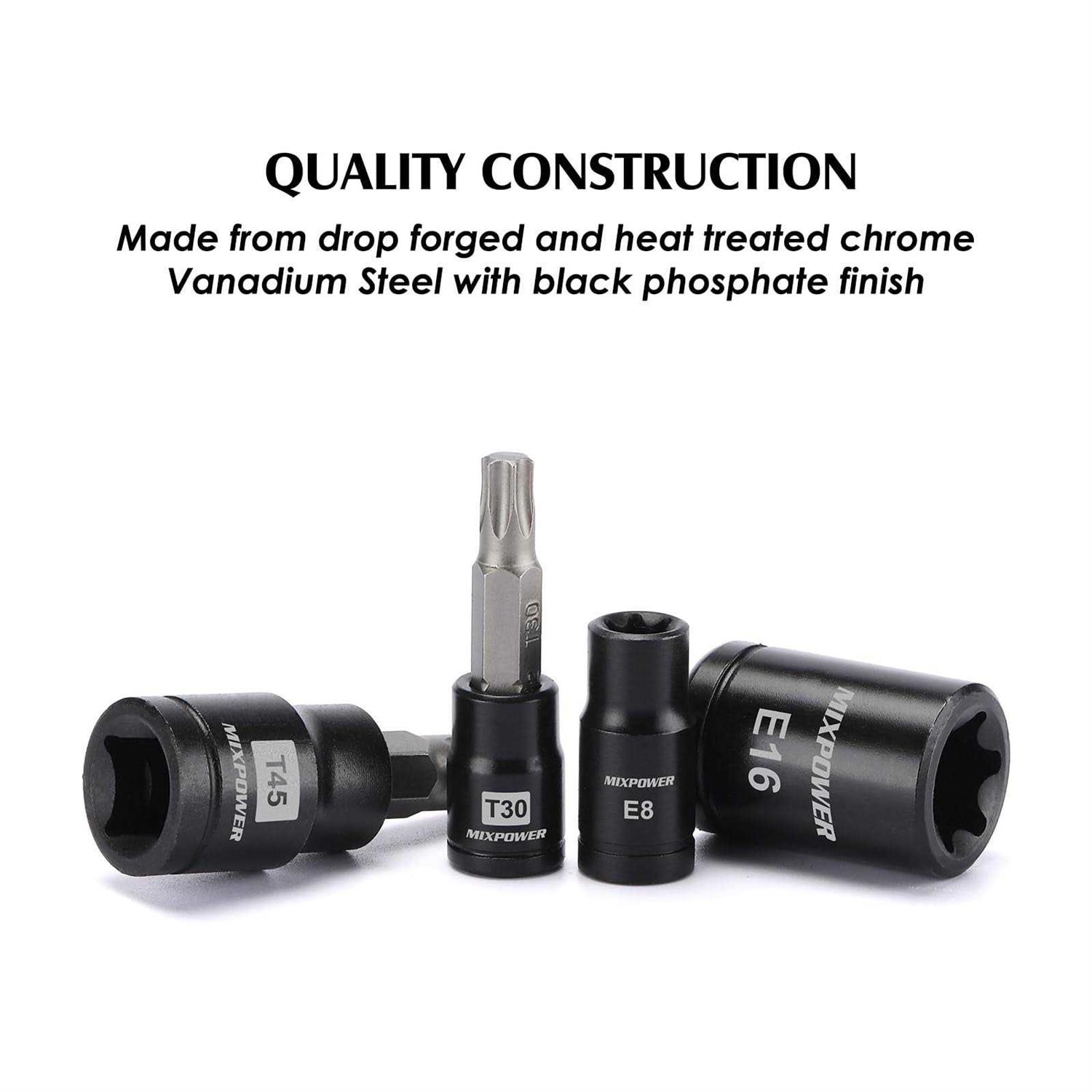 MIXPOWER 25 Piece Torx Bit Socket and Female External Socket Set