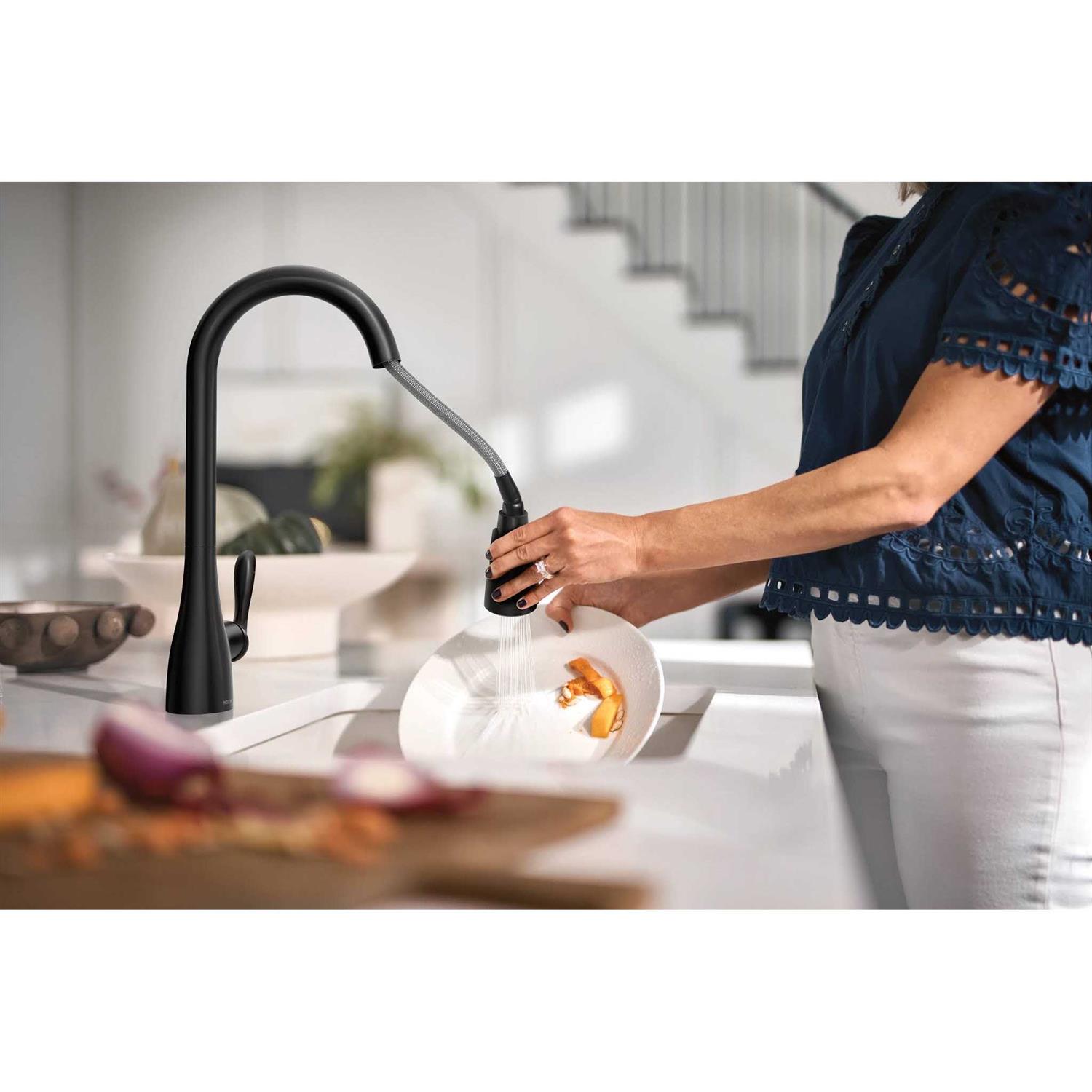 Be the first to review “Moen 87912BL Georgene Matte Black Single Handle High-Arc Kitchen Faucet with Sprayer Function”