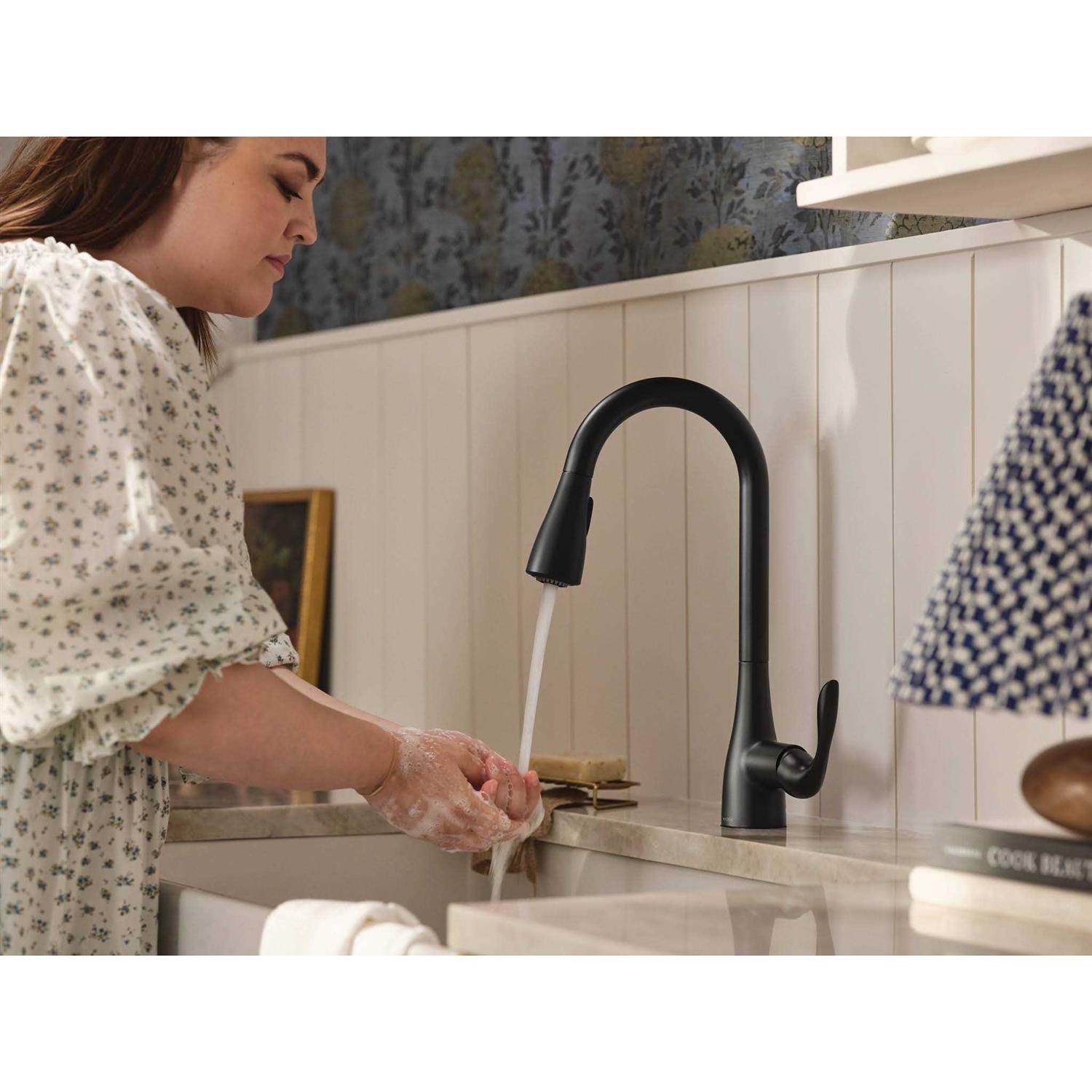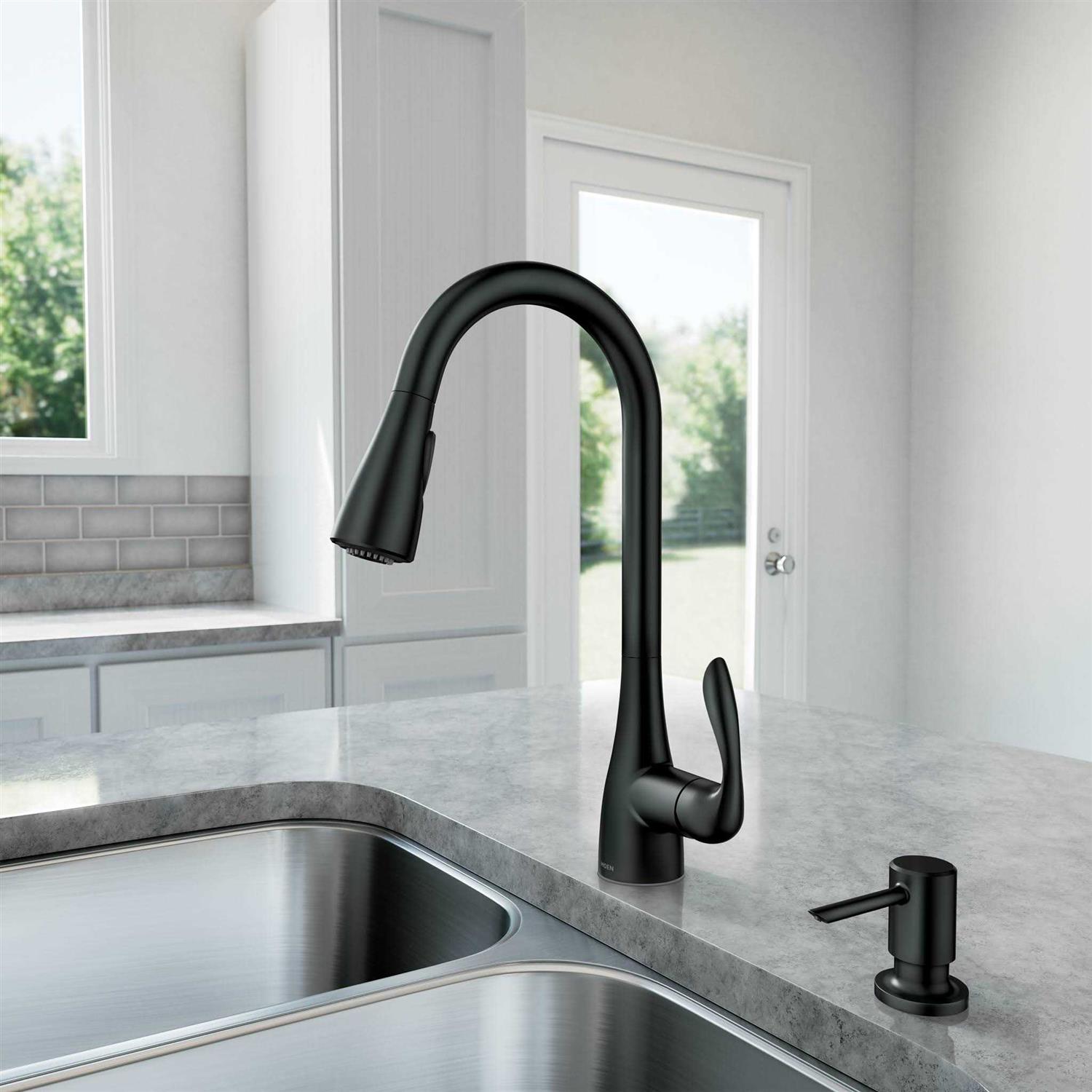 Moen 87912BL Georgene Matte Black Single Handle High-Arc Kitchen Faucet with Sprayer Function