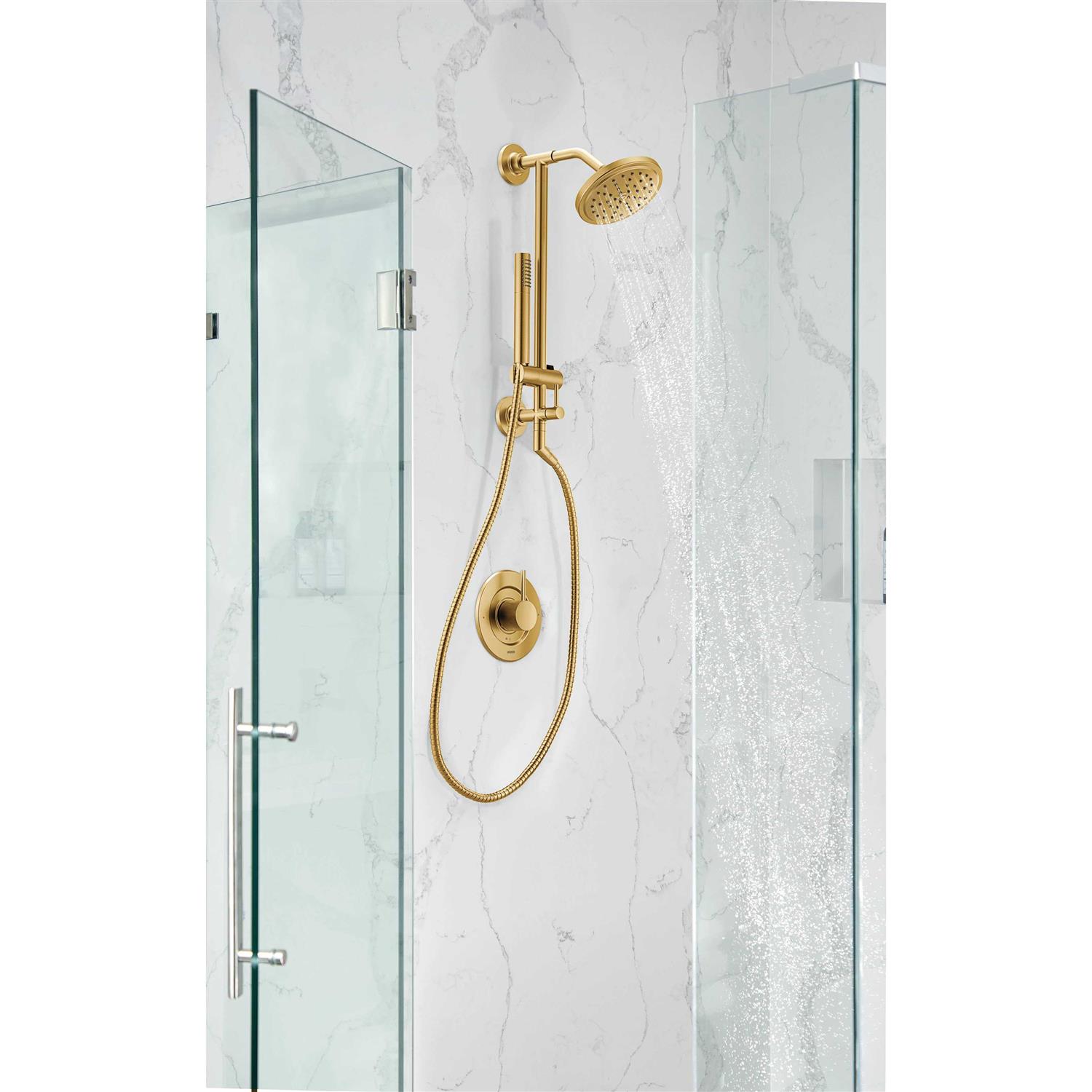 With industrial-inspired sophistication, Moen’s Annex combines fashion and function, letting you enjoy both the showerhead and handshower of your choice. Versatile Annex installs without disturbing existing tile or having to change the height of the showerhead, so you can easily add a handshower to your shower design. With 2½ adjustability between the shower rail and wall, Annex installs easily against any surface. In addition, it mounts directly to a flush wall or a wall with up to a 1″ offset. The secure Annex mounting system meets ADA pull-force requirements, up to 250 lbs. Annex pairs with M-Core, Posi-Temp or Mentrol valves and corresponding trims.