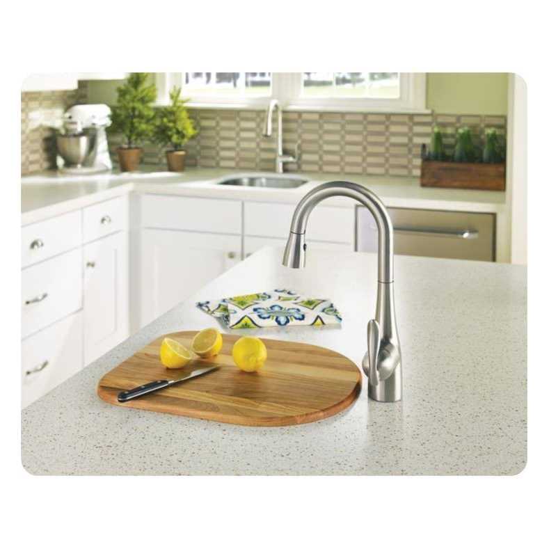Arbor’s smooth profile is tailored to perfection. The slight flare of the handle and the curve of the spout make this a transitional look that works with a variety of decorating styles. Power Clean spray technology provides 50 percent more spray power versus most of our pulldown and pullout faucets without the Power Clean technology. Equipped with the Reflex system for smooth operation, easy movement and secure docking of the pulldown/pullout spray head.