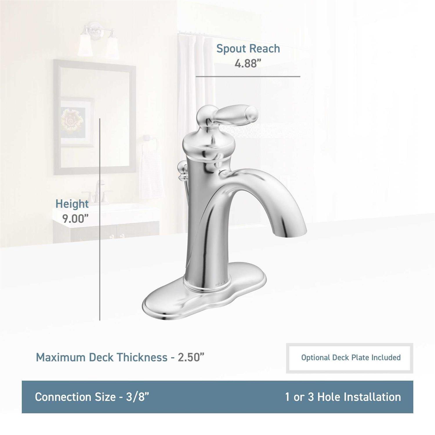 Add a modern look to any bathroom with this piece from Moen. Turn your bathroom into a stylish space with this single-control faucet. Its deck mounted design works well with many different sinks and is easy to set up. Save water and get the same clean with this WaterSense certified faucet.