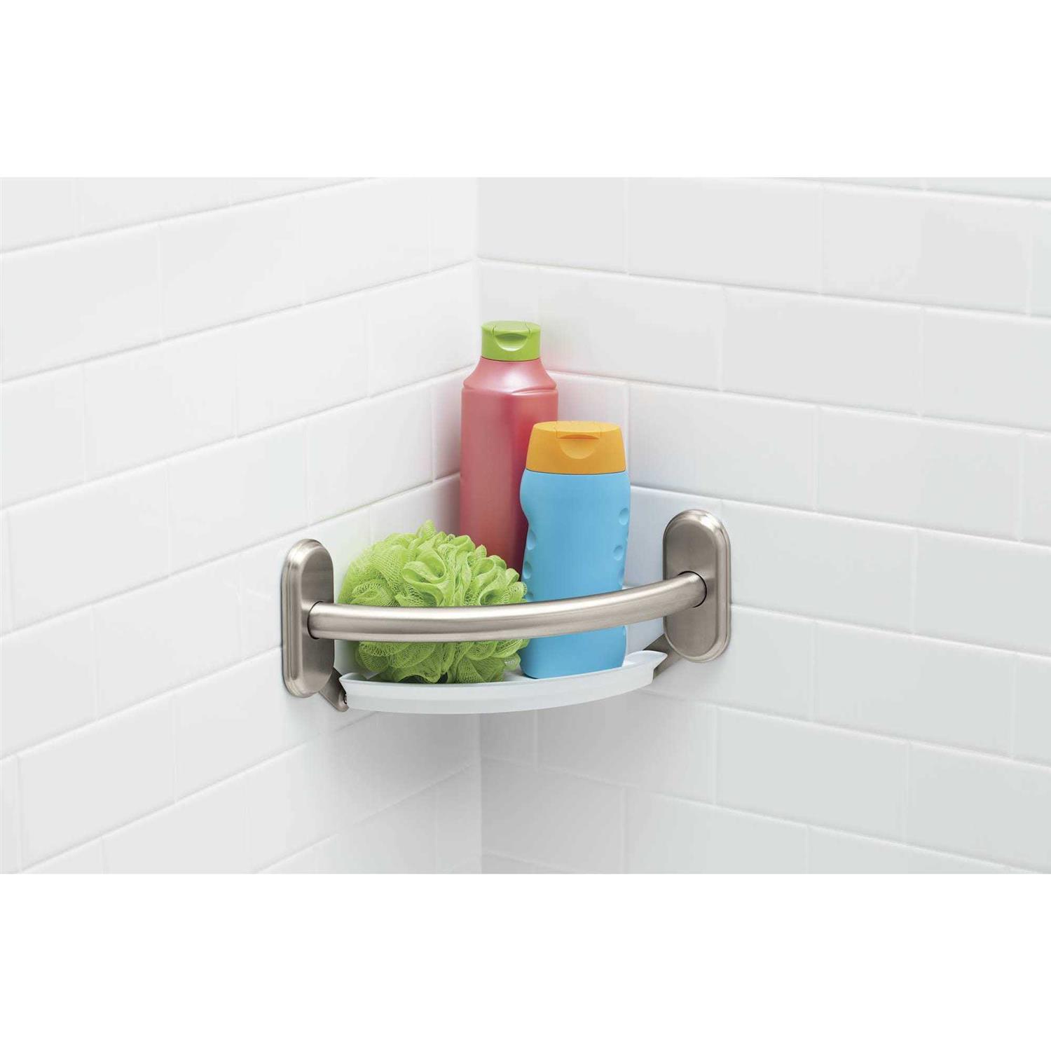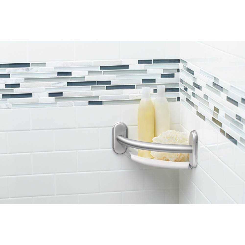 The Designer Corner Shelf with Grab Bar combines security and convenience with style and sophistication. The multi-function design allows you to increase safety while reducing clutter in the bathroom. The sleek look of this grab bar will enhance any decor providing additional storage in the shower.