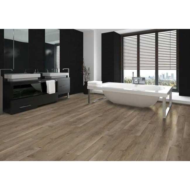 To Tich Street in color Rustic Taupe by Aladdin Commercial is a Waterproof 6in. x 48in. vinyl flooring. Sample product. Order a Swatch Swatch.