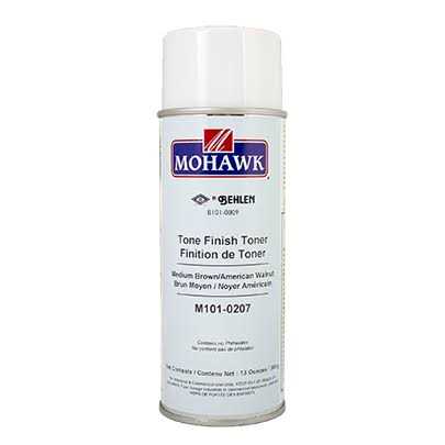 Mohawk Tone Finish Toners are used throughout the industry for quick efficient professional touch-up. Tone Finish Toners contain finely ground, non-fading pigments for color repairs that last. Toners adapt to various methods so as to blend in spot repairs. Adjustment of sheen is achieved with a topcoat of clear lacquers available in gloss, satin, flat and dead flat. Aerosol form, no extra equipment needed. Feathers in invisibly for touch-up repairs. Available in a wide variety of wood finishing shades.