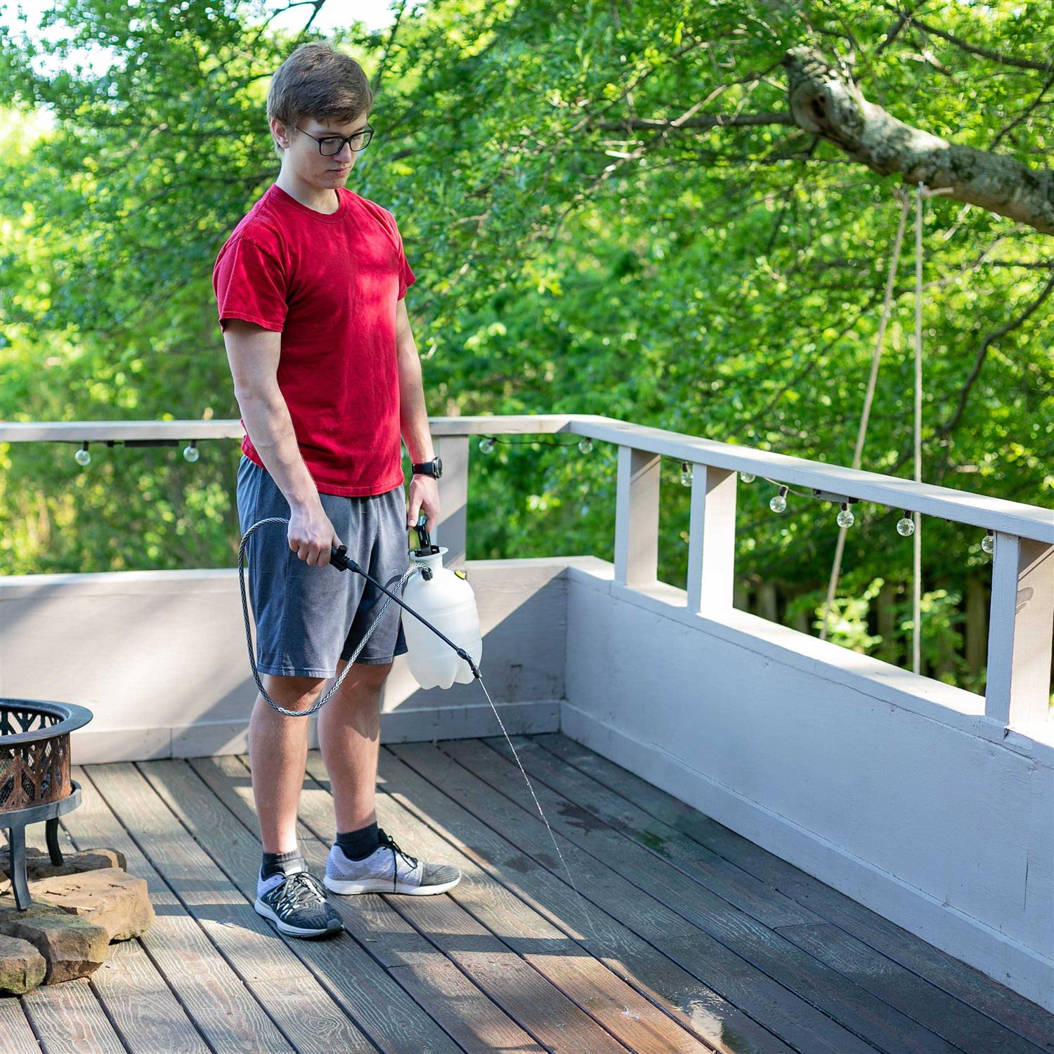 Restores the natural look to weathered. Discolored wood within minutes. No mixing. No scrubbing. Spray on. Wait 5 to 10 minutes. Rinse off. Will renew up to 250 to 300 sq ft. Cleans discolored weathered wood siding. Fencing & decks. For outdoor use.