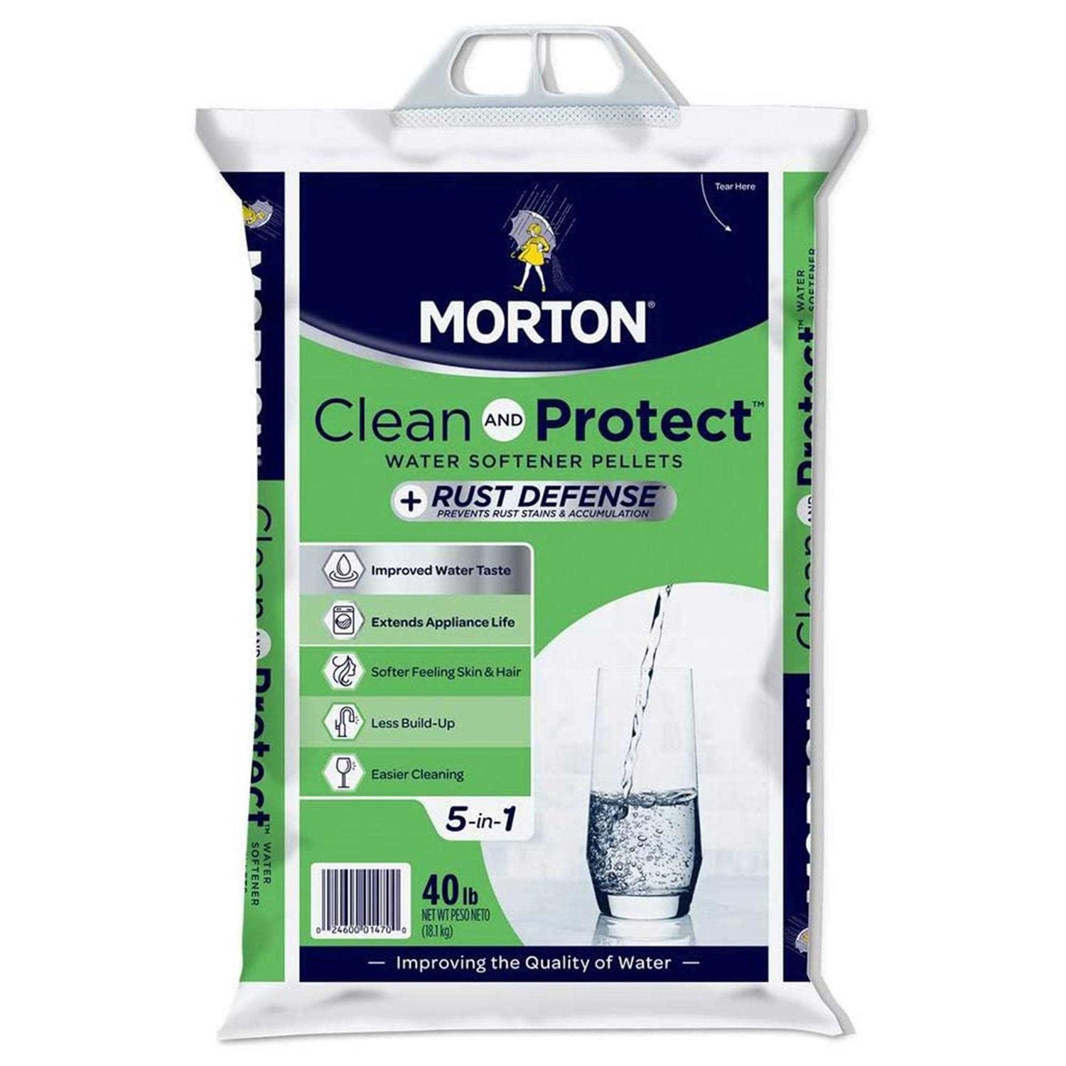 Morton Clean and Protect Water Softening Pellets, +Rust Defense – 40 lb