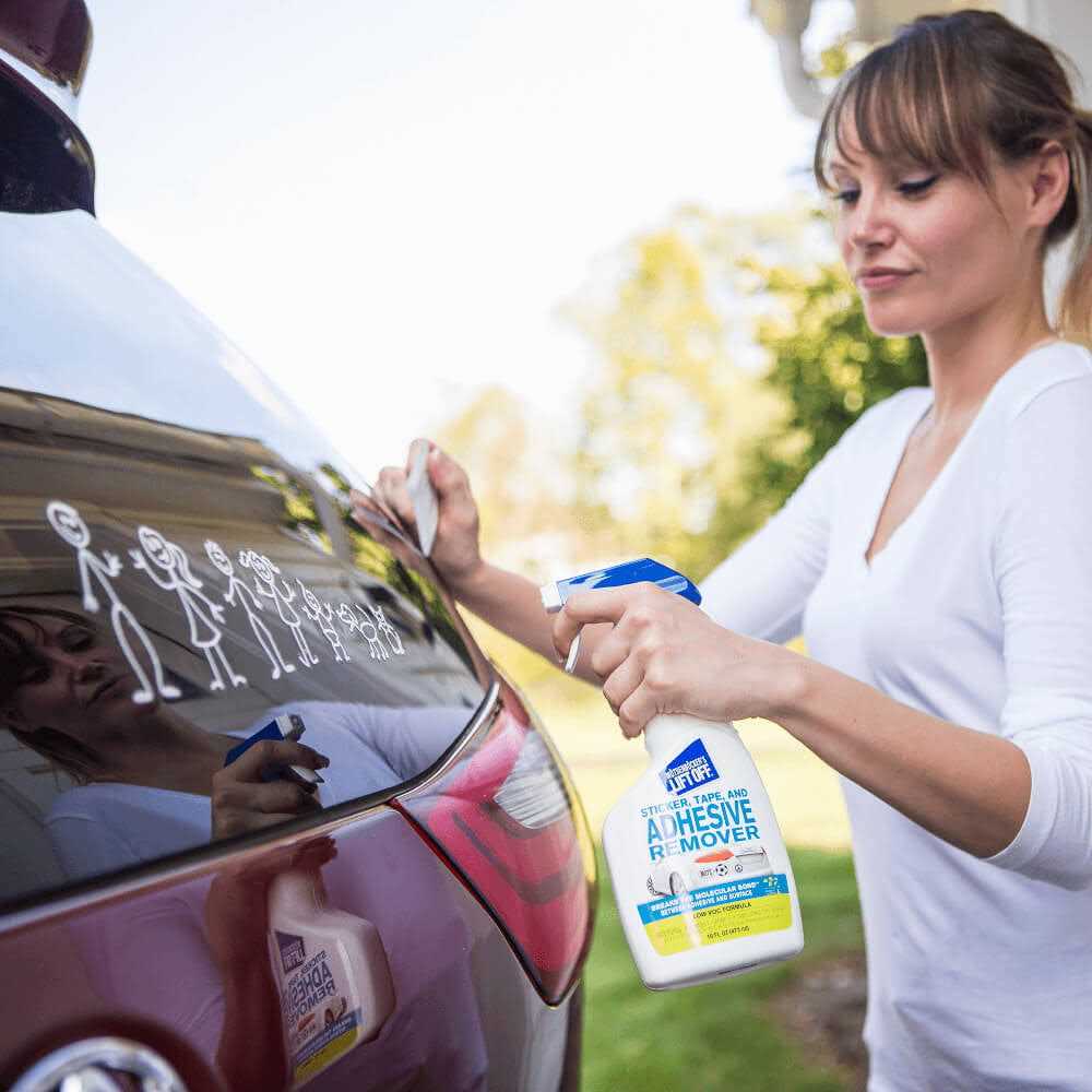 Motsenbocker’s Lift-off Sticker, Tape and Adhesive Remover, 16 oz., White, has a patented formula that breaks the molecular bond in adhesives for fast and easy removal. Use it to remove stickers, pinstriping, spray adhesives, labels, tar, tapes, glues, chewing gum, and sap. Safe for use on most vehicles, boats, RVs, fiberglass, metal, tile, vinyl, plastic, glass, brick, and concrete. Test on an inconspicuous area to ensure colorfastness and surface integrity before full usage.