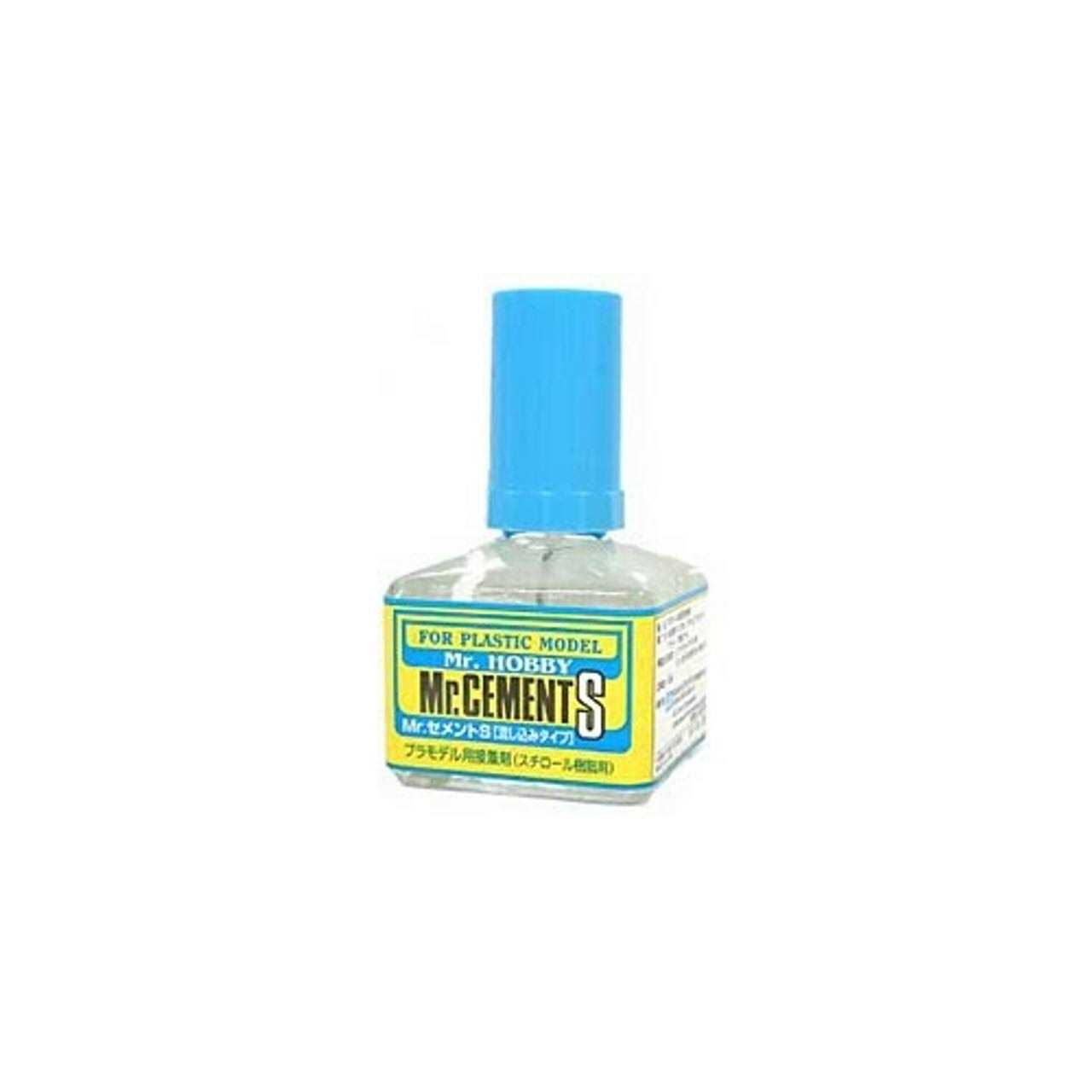 Mr Cement S from Mr Hobby, a thin liquid cement with good flow properties for plastic models. 40ml. Applicator brush in lid.Continental USA Shipping only, no expedited shipping. Gender: male.