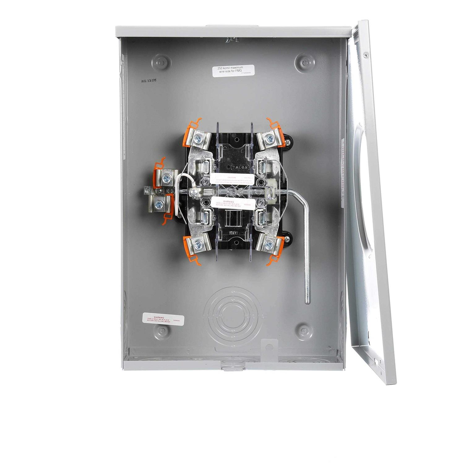 The Siemens 200 Amp Lever-Bypass Overhead/Underground Meter Socket comes with 350mcm lay-in lugs, a ground lug and a factory-installed fifth jaw. Designed to accommodate either overhead or underground service entrance feeds, this meter socket has a powder-coated paint finish and is UL listed and ANSI certified for safety.