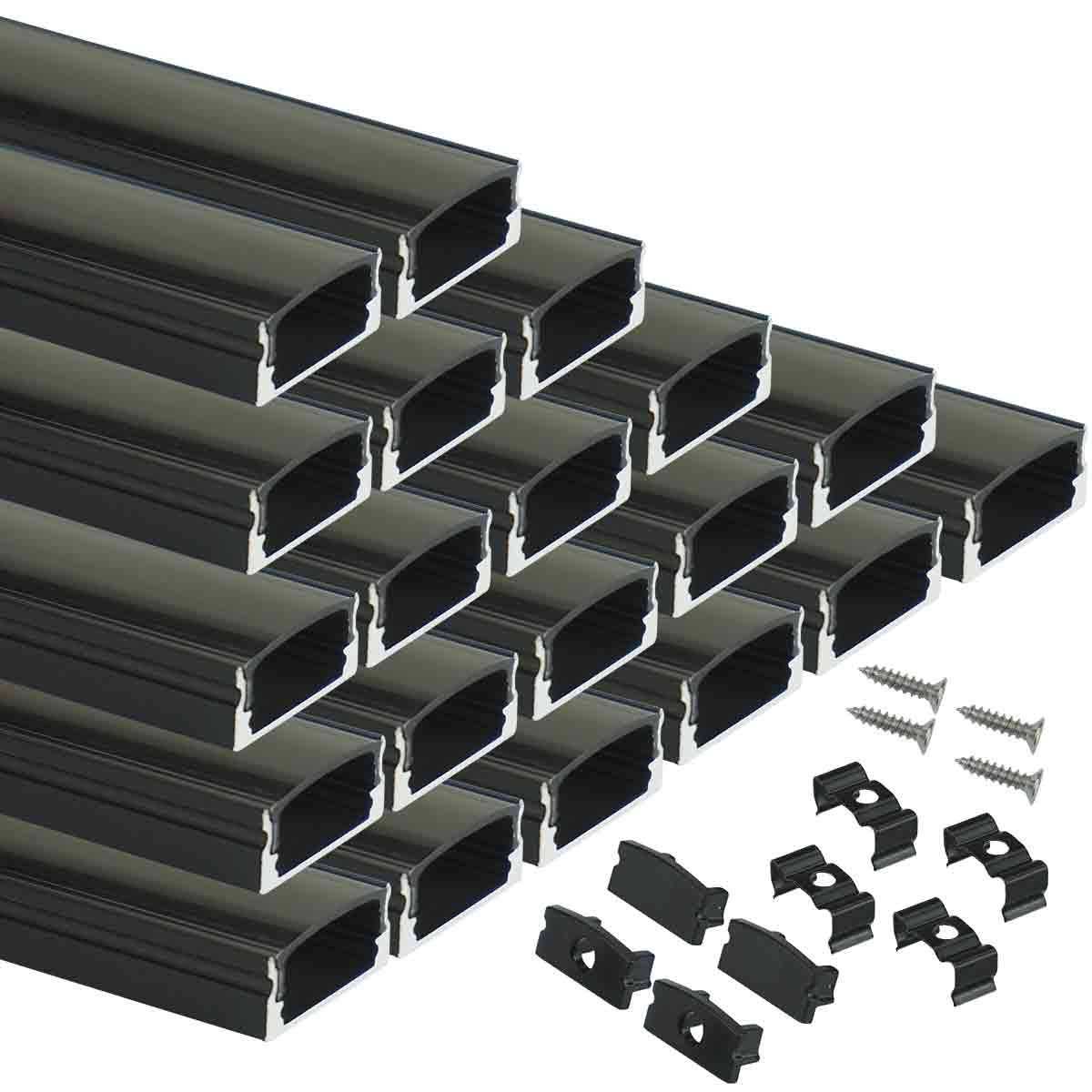 Muzata 3.3FT/1M Black LED Channel System with Smoky Black Cover Aluminum Track Housing Profile for Strip Light