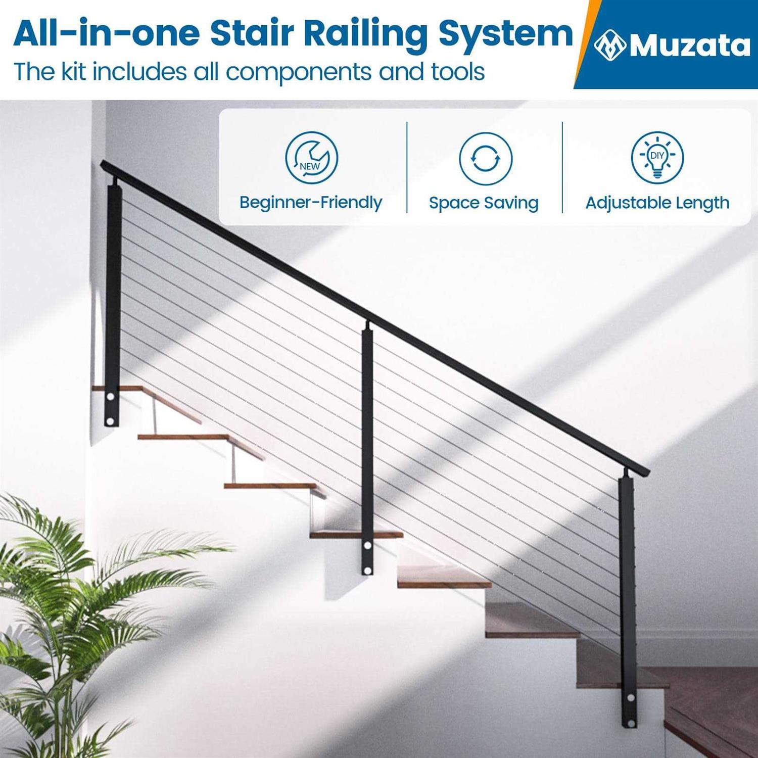Muzata 6.5ft Mount Mount Stair Cable Railing System Complete Set