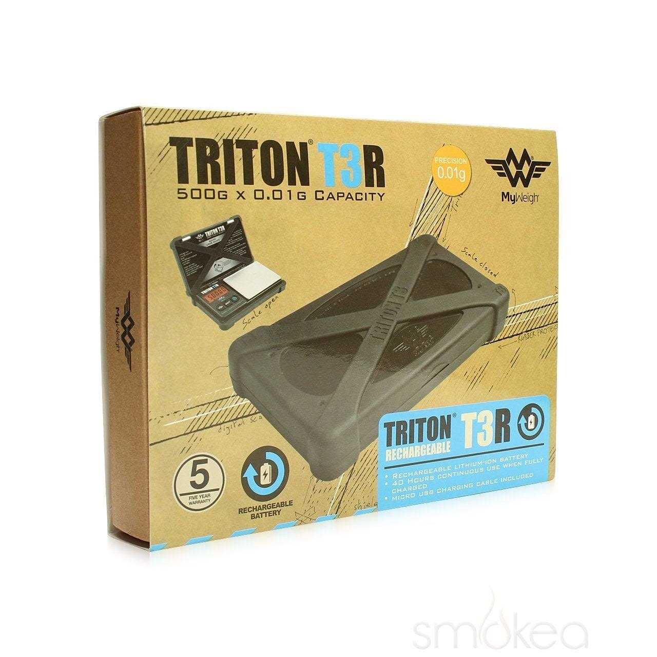 The My Weigh Triton T3 Digital Scale is tough and padded with a unique design. This is the strongest pocket scale out there. The T3 Rechargeable is an upgrade of the T3 that runs on a rechargeable lithium-ion battery that lasts 40 hours on one charge.  Strong and Tough The Triton T3 is a tough scale inside and out. It has a unique, fully padded outer rubber case, while the interior features only reinforced and shock mounted components. This is the strongest digital pocket scale on the market. It protects against drops and abuse. Hard Protective Cover The removable hard protective cover of this scale protects the scale when it’s not being used, and it can also work as an extra weighing tray in addition to the stainless steel tray. It has raised edges for stability and so that you can weigh things without them falling off the platform. Battery Operation The redesigned T3 runs on a rechargeable lithium-ion battery. When fully charged, the battery holds 40 hours of continuous use. And the scale features Auto-OFF after 60 seconds to preserve power. The T3 also includes a micro USB cable for charging. Weighing Features The Triton T3 Rechargeable has a 17.6-ounce / 500 gram capacity and features 6 weighing modes – grams, ounces, grains, carats, troy ounces and pennyweights. It has a tare feature and a calibration feature. It also has a backlit LCD display, so it’s easy to read your results.