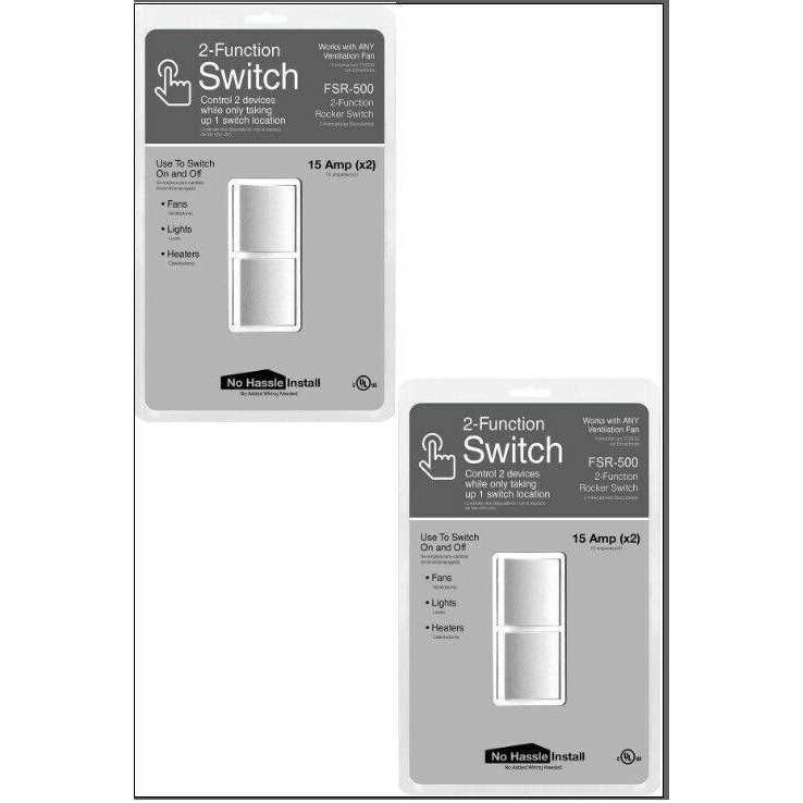 This 2-function rocker switch allows you to control two devices (fans, lights, heaters, etc.) while only taking up one switch location. Maximize your space, create a beautiful look, and control more devices with this simple to install switch. Use with any decora style wall plate and works with any ventilation fan.