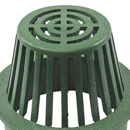 Corrugated drain fittings atrium grate”draintech” green size 6 inches Made of highest quality structural foam polyethylene with UV inhibitor. For use in all areas of vegetation and trees. Use in non-traffic areas where lawn mowers are excluded. 6 inches fits 6 inches S/ D pipe fittings, 6 inches bell end, 6 inches corrugated and 6 inches catch basins. O pen surface area 23.91 sq.in. 5/16 inches grate opening.
