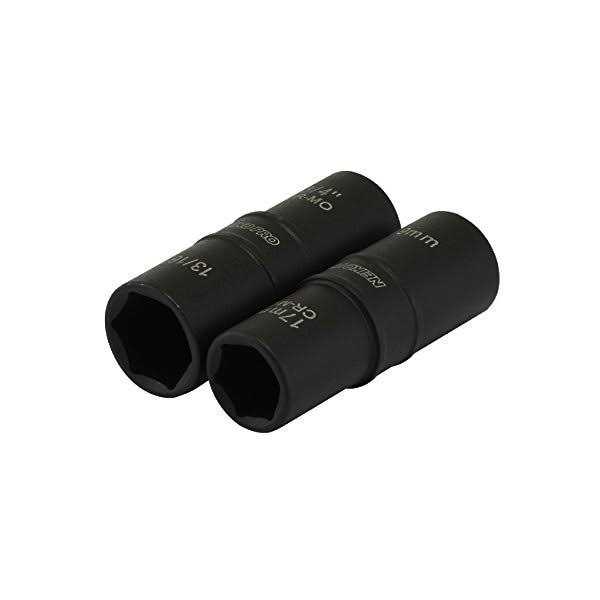 This Thin Wall Flip Impact Socket set are designed to allow easy access to recessed wheel nuts and other applications where space is limited. The flip socket design provides more sizes with less sockets, 4 sockets with 8 different sizes. Chromium Molybdenum Steel with a Black Phosphate Finish construction. Includes blow mold storage case for storage and portability. Sizes Includes: 17mm x 19mm 21mm x 22mm 3/4″ x 13/16″ 7/8″ x 15/16″ 3″.