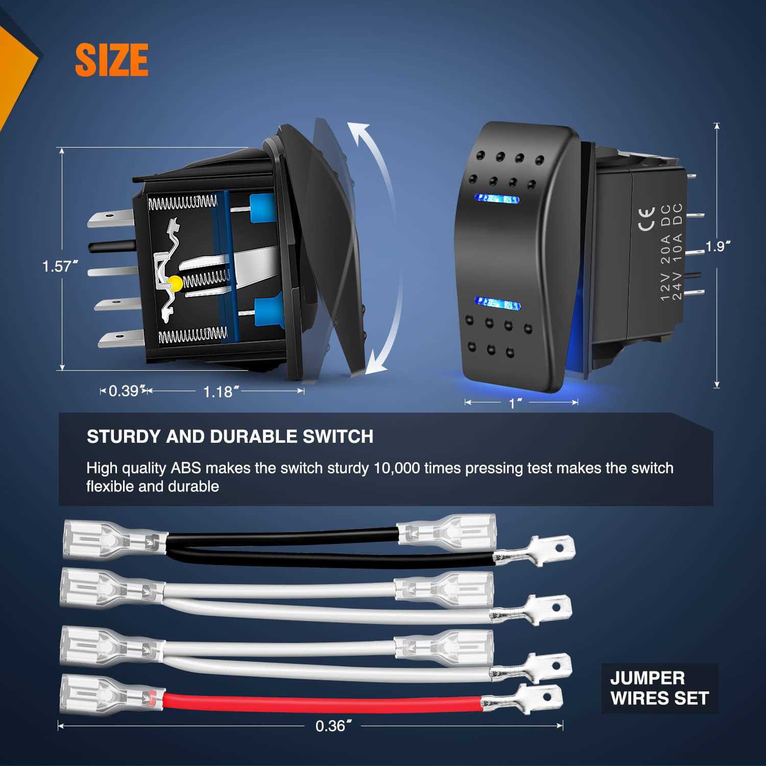 Easy to install and use: 7 pin on off on rocker switch with DPDT design (double pole double Throw), rated at 20AMP/12VDC and 10AMP/24VDC. Can be installed or replaced on the original rocker switch panels. It is easy and simple to set up. Can control 2 loads. Wide Applications: Universal fit for all cars, RVs, SUVs, ATVs, UTVs, Cans, Buses, Marine boats, Yachts, Trailers, Jeeps, Prerunners, Campers, Caravans etc; Mainly used to control the high low beam of the headlights, taillights and auxiliary lamps, etc. Sturdy and durable: made of high-quality plastic and well-conductive pins; ensure long lasting durability, highly optimized for general use and will give you a pleasant experience. Multiple Security Protection: Output circuit protection, overload protection, reverse polarity protection. Built in two premium LEDs, the highly luminous LED allows for clear visibility at night, Safer and more convenient to use. Package Includes: A 7 PIN switch