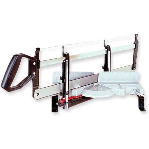 This saw can handle stock 6″ wide at 90° cuts and 3 15/16″ wide at 45°, and has a vertical capacity of 4 5/16″. Integral detents ensure square crosscuts and accurate 45° miters, and provide presets for 15°, 22.5°, 30° and 36° cuts. Grooves in the base allow you to incline the workpiece to cut compound miters at eight angles. The simple method of cutting compound miters makes this a particularly versatile saw for picture framing and trim work. Also features a fast-acting hold-down and an end stop that extends 24 1/2″. Cuts are smooth and accurate with the standard 22″ × 24 tpi blade. Extra blades are available separately in 12, 18, 24 and 32 tpi. (32 tpi is for non-ferrous metals.) Made in Sweden.