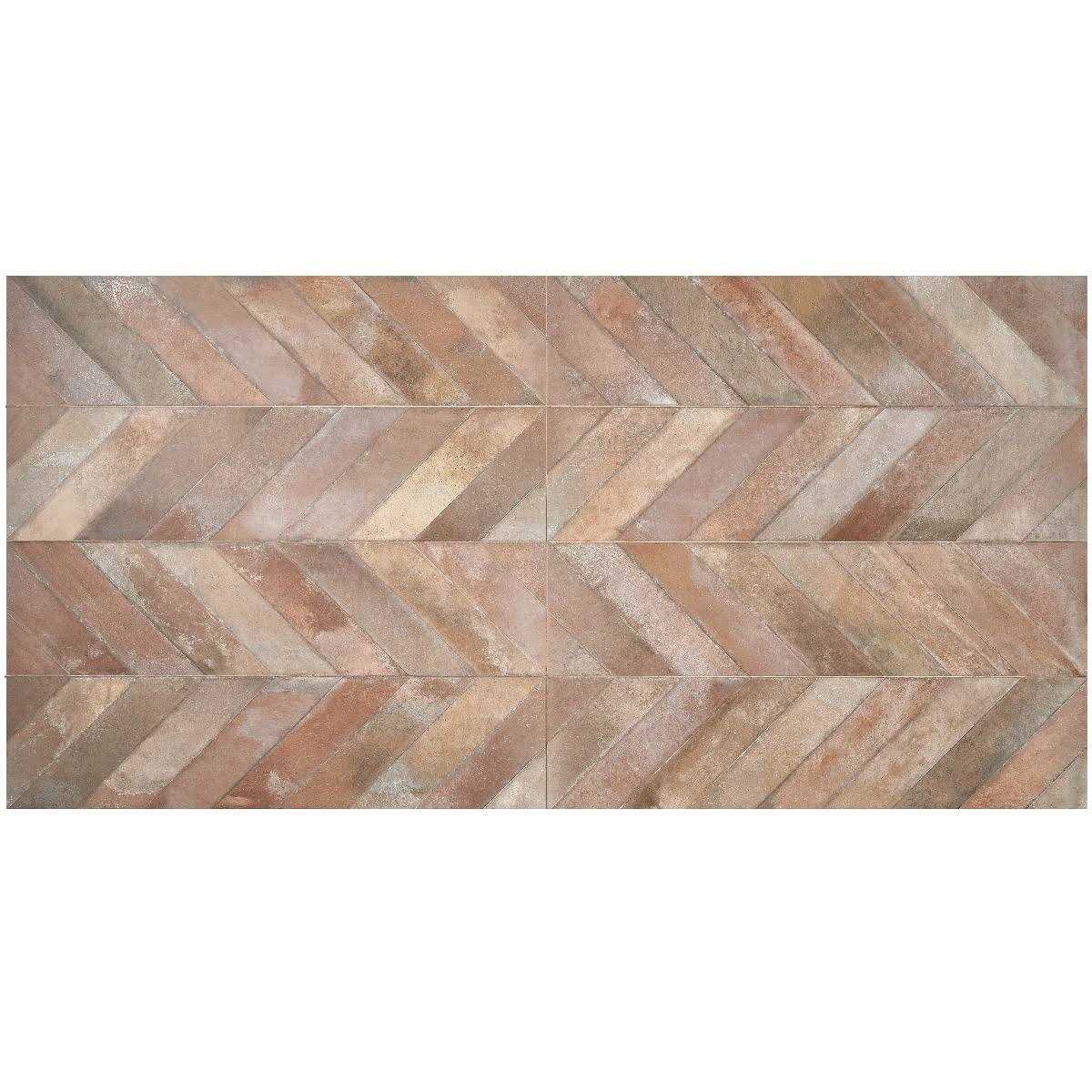 Inspired by the sculptural terraces and cobbled streets of Italy, the Nord Collection creates a dramatically new visual, breathing new life into an ancient design. These large-format 24 in. x 48 in. porcelain stoneware tiles replicate the sun-baked appearance of terra cotta with soft color variations and a natural finish, while the chevron pattern provides a modern iteration to this timeless classic. This collection is available in 4 colorways, with 2 earthy colorways that reinforce the traditional Italian terra cotta style alongside white and gray options that provide a modern minimalist aesthetic. The Nord tiles fuse old-world charm with contemporary lines and cutting-edge porcelain technology, resulting in an elegant series that can complement any decor and are suitable for walls or floors in commercial and residential spaces.