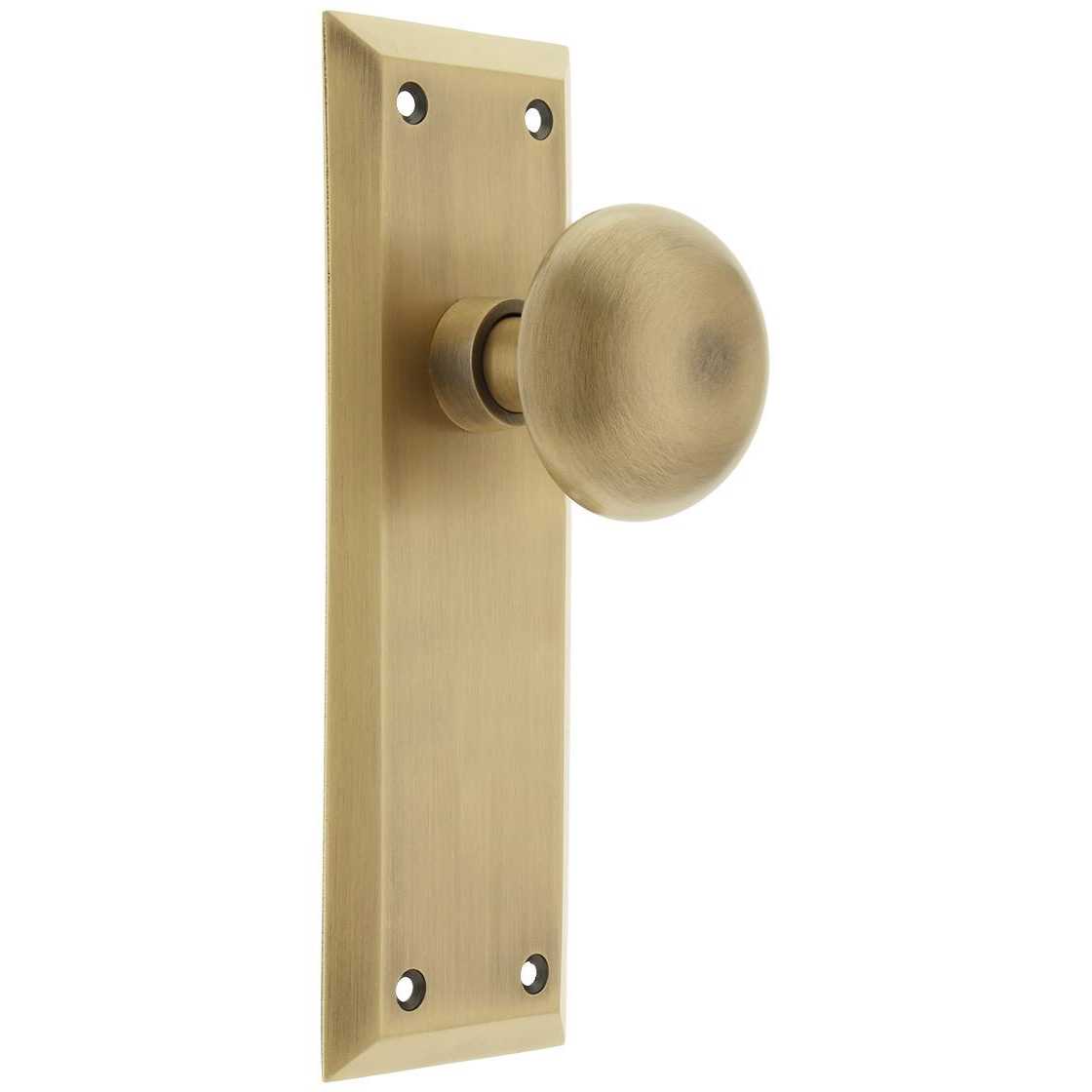 The clean lines and tailored style of the New York Plate gives a distinctive look that will last for years. Add our New York door knob with its smooth round shape for a look that will forever be refined. All Nostalgic Warehouse door knobs are mounted on a solid not plated forged brass base for durability and beauty.