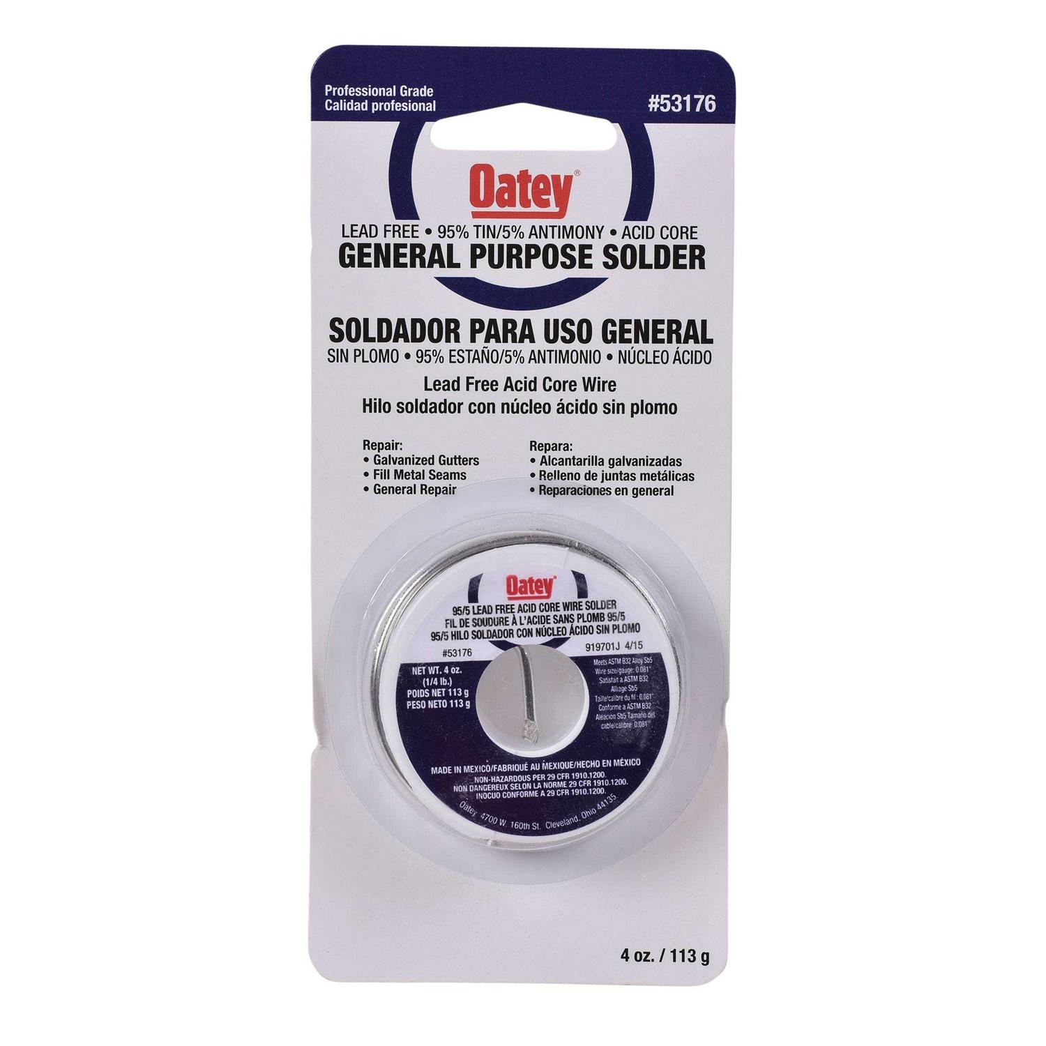 Solid wire solder silver lead free”safe flo” bulk reel can not be used on aluminum. Size 1 pound Can not be used on aluminum. Alloy of tin, copper, silver, and bismuth that works much like 50/50 solder. Used for tin plate work, sheet metal seaming, and hot water heating lines. Contains less than 2 percent silver. Works with any high grade paste or liquid flux and a standard propane torch. Oatey no.95 tinning flux recommended. Provides excellent flow and fill characteristics. 420 to 460 degrees f melting range; 0.117 inch diameter. Meets requirements of safe drinking water act for use on copper potable water lines.