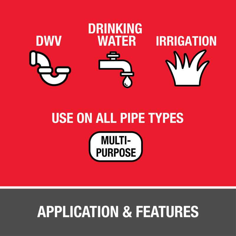 Get the job done the right way with Oatey All Purpose Cement. It is designed for use on several different pipes and fittings including water, pressure and conduits. This solvent cement works well for ABS, PVC and more that are up to 1′ in diameter. It has a medium body with a semi-transparent appearance and helps to create a strong bond. This Oatey Cement is suitable to use in temperatures as low as 40 degrees and up to 110.
