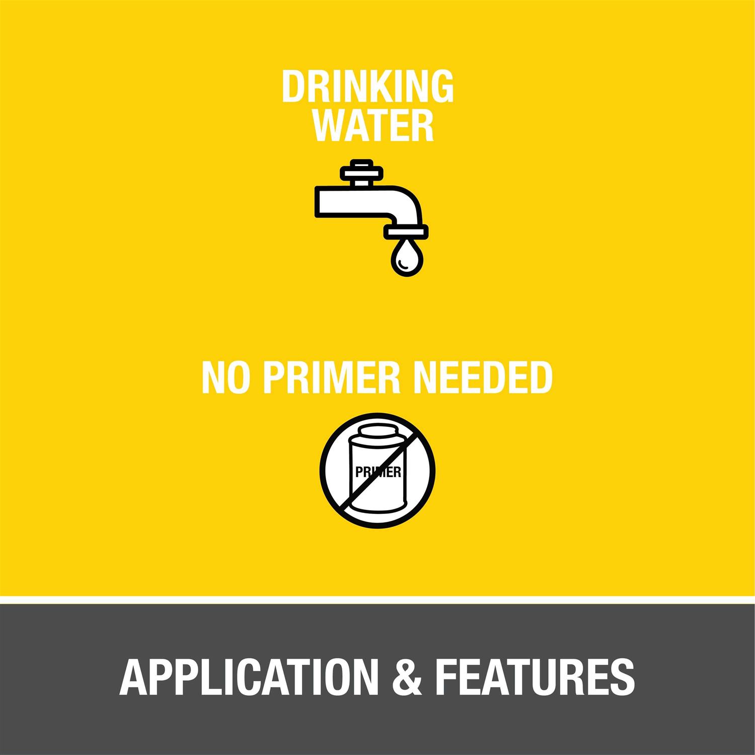 Oatey FlowGuard Gold 1-Step All Weather Fast Set Yellow Cement is recommended for cold water systems and hot water systems up to 200°F / 93°C. Its prevention formula is designed to help protect pipes from corrosion. Its medium body has excellent gap filling properties and is easy to apply with included in-lid dauber. This yellow, low VOC, fast set cement can be used to solvent weld copper tube sizes (CTS) CPVC hot and cold potable water pipes and fittings up to 2 in. diameter with interference fit. Oatey products have earned the trust of plumbing professionals for over 100 years.