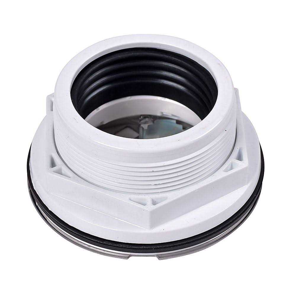 - Compression gasket tightens around 2″ schedule 40 dwv pipe with caulking nut and wrench.