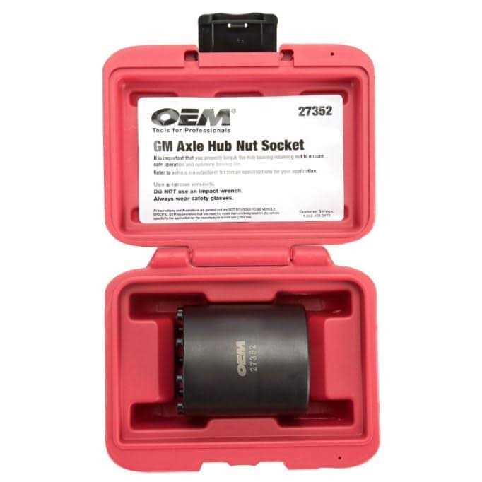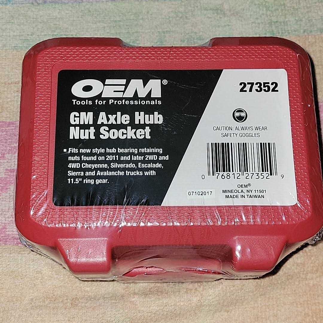 OEMTOOLS for Professionsals GM Axle Hub Nut Socket 27352 Fits new style hub bearing retaining nuts found on 2011 and later 2WD and 4WD Cheyenne, Silverado, Escalade, Sierra and Avalanche trucks with 11.5 ring gear. Made in Taiwan Comes with hard plastic case.